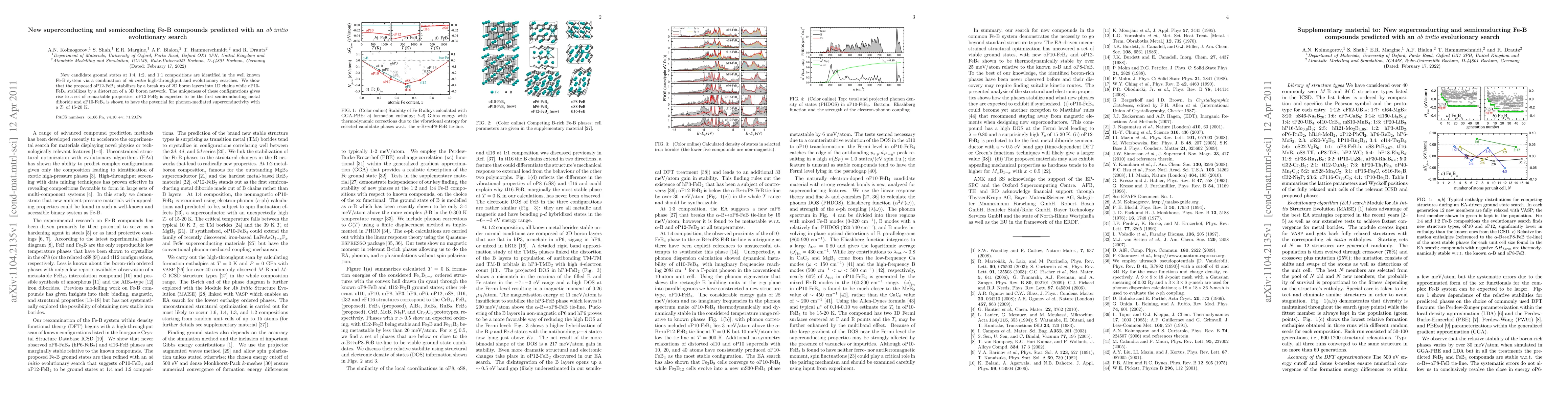 New candidate ground states at 1:4, 1:2, and 1:1 compositions are identified in the well-known Fe-B system via a combination of ab initio high-throughput and evolutionary searches. We show that the proposed oP12-FeB2 stabilizes by a break up of 2D boron layers into 1D chains while oP10-FeB4 stabilizes by a distortion of a 3D boron network. The uniqueness of these configurations gives rise to a set of remarkable properties: oP12-FeB2 is expected to be the first semiconducting metal diboride and oP10-FeB4 is shown to have the potential for phonon-mediated superconductivity with a Tc of 15-20 K.