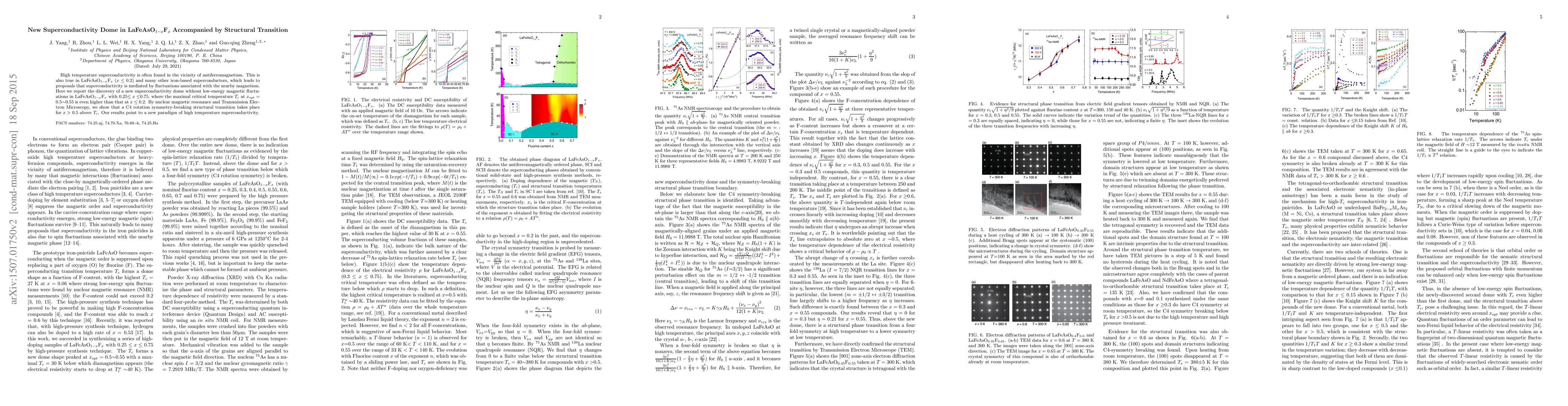 This paper reports the discovery of a new superconductivity dome in LaFeAsO$_{1-x}$F$_{x}$ without low-energy magnetic fluctuations, achieving higher critical temperatures than previously observed. A structural transition accompanied by a C4 symmetry-breaking is identified above $T_c$ for $x > 0.5$, suggesting a new paradigm for high-temperature superconductivity.