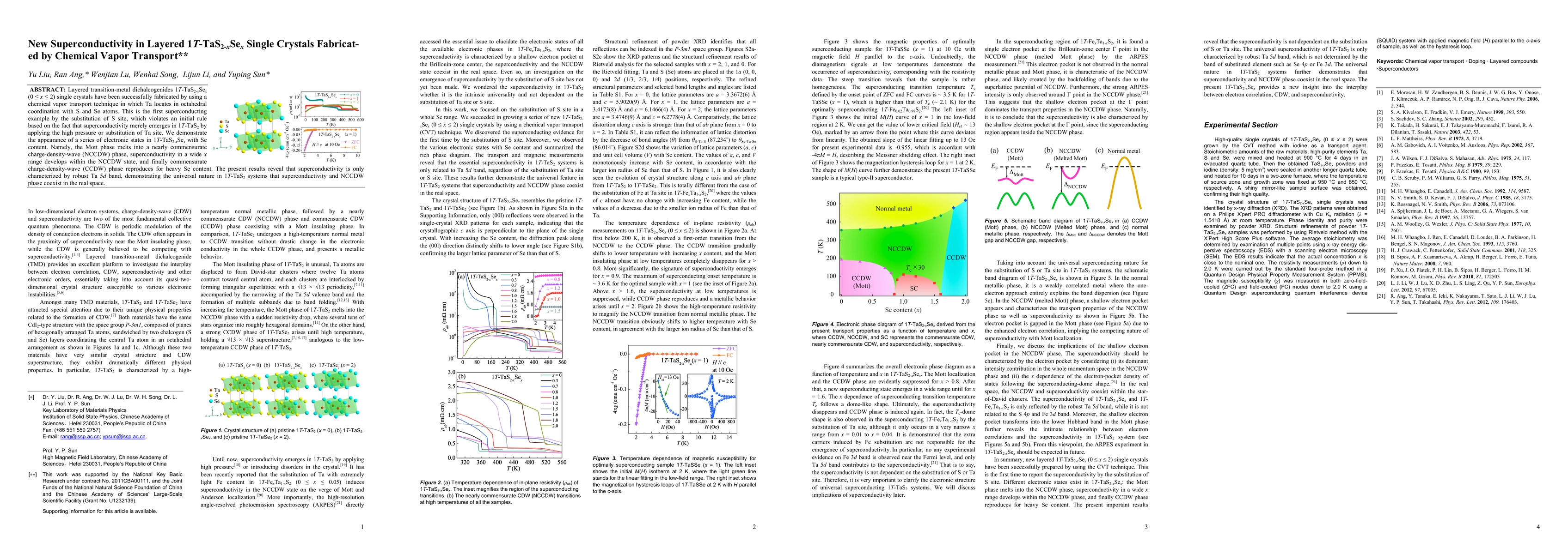 Layered transition-metal dichalcogenides 1T-TaS2-xSex (0<=x<=2) single crystals have been successfully fabricated by using a chemical vapor transport technique in which Ta locates in octahedral coordination with S and Se atoms. This is the first superconducting example by the substitution of S site, which violates an initial rule based on the fact that superconductivity merely emerges in 1T-TaS2 by applying the high pressure or substitution of Ta site. We demonstrate the appearance of a series of electronic states in 1T-TaS2-xSex with Se content. Namely, the Mott phase melts into a nearly commensurate charge-density-wave (NCCDW) phase, superconductivity in a wide x range develops within the NCCDW state, and finally commensurate charge-density-wave (CCDW) phase reproduces for heavy Se content. The present results reveal that superconductivity is only characterized by robust Ta 5d band, demonstrating the universal nature in 1T-TaS2 systems that superconductivity and NCCDW phase coexist in the real space.