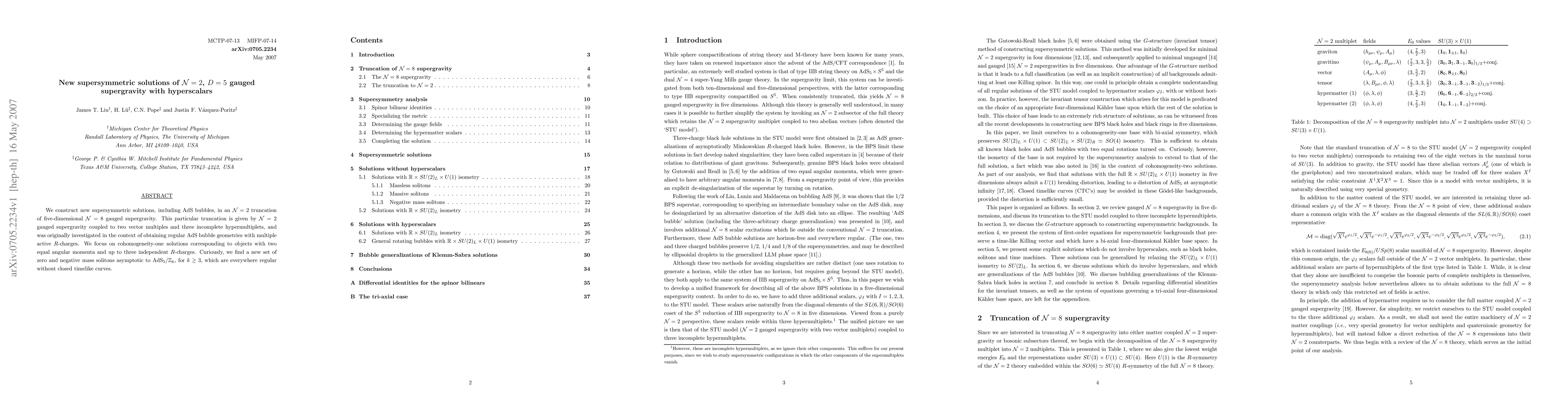 We construct new supersymmetric solutions, including AdS bubbles, in an N=2 truncation of five-dimensional N=8 gauged supergravity. This particular truncation is given by N=2 gauged supergravity coupled to two vector multiples and three incomplete hypermultiplets, and was originally investigated in the context of obtaining regular AdS bubble geometries with multiple active R-charges. We focus on cohomogeneity-one solutions corresponding to objects with two equal angular momenta and up to three independent R-charges. Curiously, we find a new set of zero and negative mass solitons asymptotic to AdS_5/Z_k, for k \ge 3, which are everywhere regular without closed timelike curves.