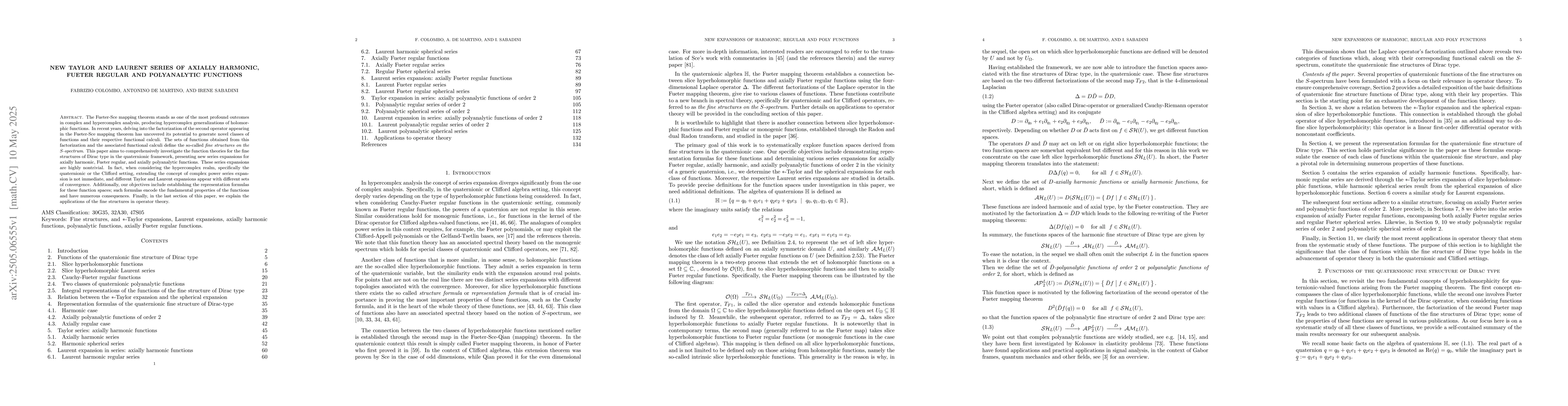 The research investigates function theories for fine structures of Dirac type in the quaternionic framework, presenting new series expansions for axially harmonic, Fueter regular, and axially polyanalytic functions, along with representation formulas and applications in operator theory.