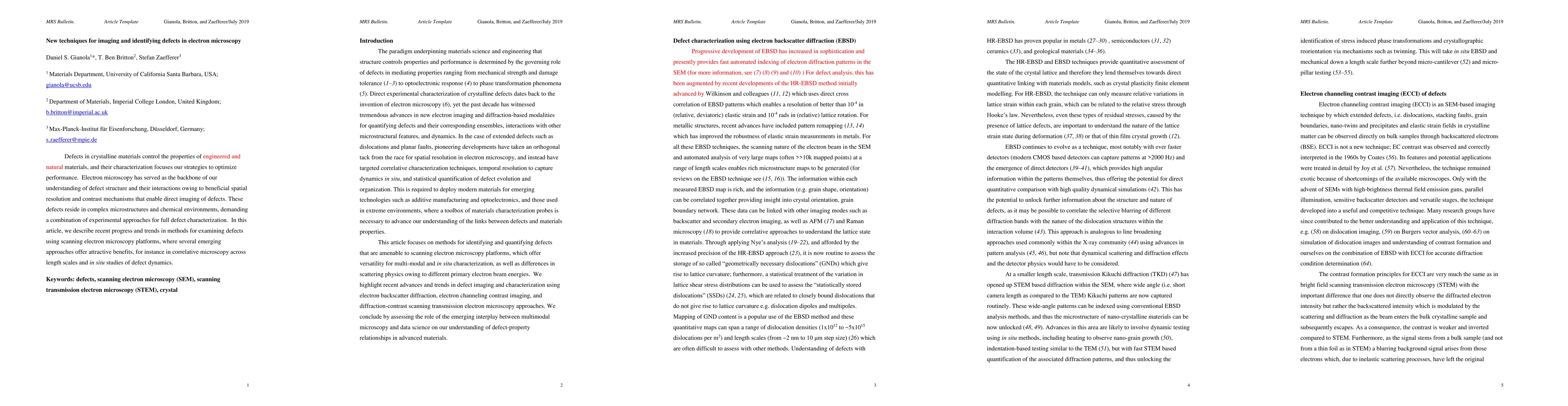Defects in crystalline materials control the properties of materials, and their characterization focuses our strategies to optimize performance. Electron microscopy has served as the backbone of our understanding of defect structure and their interactions owing to beneficial spatial resolution and contrast mechanisms that enable direct imaging of defects. These defects reside in complex microstructures and chemical environments, demanding a combination of experimental approaches for full defect characterization. In this article, we describe recent progress and trends in methods for examining defects using scanning electron microscopy platforms, where several emerging approaches offer attractive benefits, for instance in correlative microscopy across length scales and in situ studies of defect dynamics.