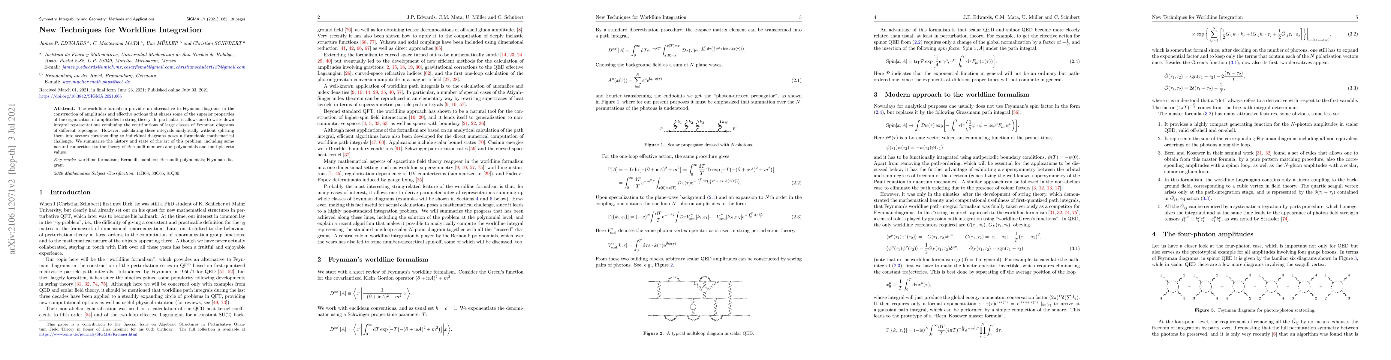 The worldline formalism provides an alternative to Feynman diagrams in the construction of amplitudes and effective actions that shares some of the superior properties of the organization of amplitudes in string theory. In particular, it allows one to write down integral representations combining the contributions of large classes of Feynman diagrams of different topologies. However, calculating these integrals analytically without splitting them into sectors corresponding to individual diagrams poses a formidable mathematical challenge. We summarize the history and state of the art of this problem, including some natural connections to the theory of Bernoulli numbers and polynomials and multiple zeta values.