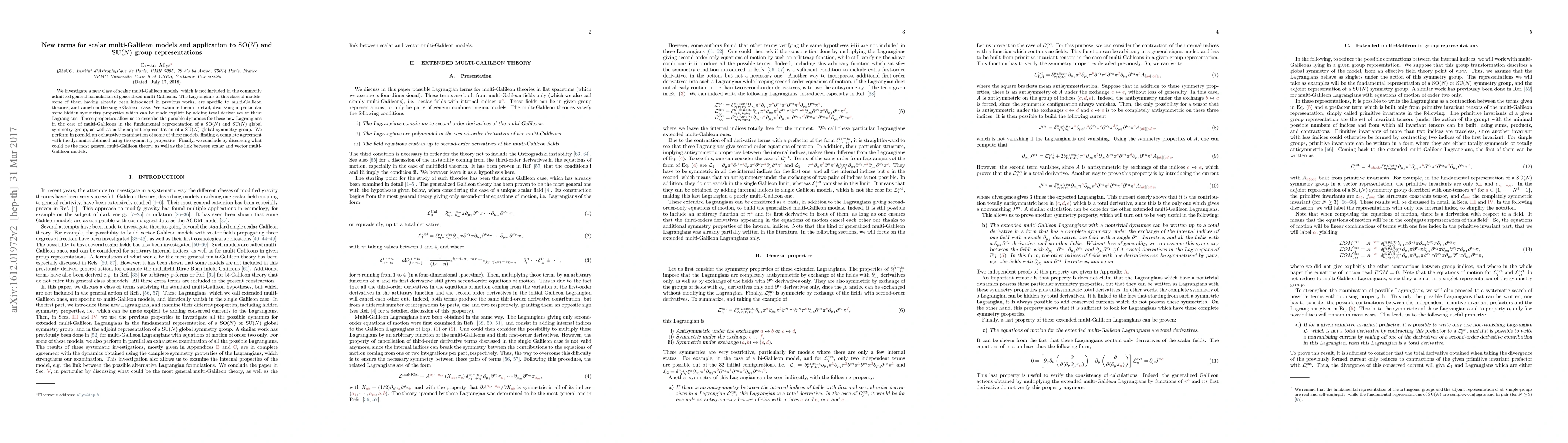 We investigate a new class of scalar multi-galileon models, which is not included in the commonly admitted general formulation of generalized multi-galileons. The Lagrangians of this class of models, some of them having already been introduced in previous works, are specific to multi-galileon theories, and vanish in the single galileon case. We examine them in details, discussing in particular some hidden symmetry properties which can be made explicit by adding total derivatives to these Lagrangians. These properties allow us to describe the possible dynamics for these new Lagrangians in the case of multi-galileons in the fundamental representation of a SO(N) and SU(N) global symmetry group, as well as in the adjoint representation of a SU(N) global symmetry group. We perform in parallel an exhaustive examination of some of these models, finding a complete agreement with the dynamics obtained using the symmetry properties. Finally, we conclude by discussing what could be the most general multi-galileon theory, as well as the link between scalar and vector multi-galileon models.