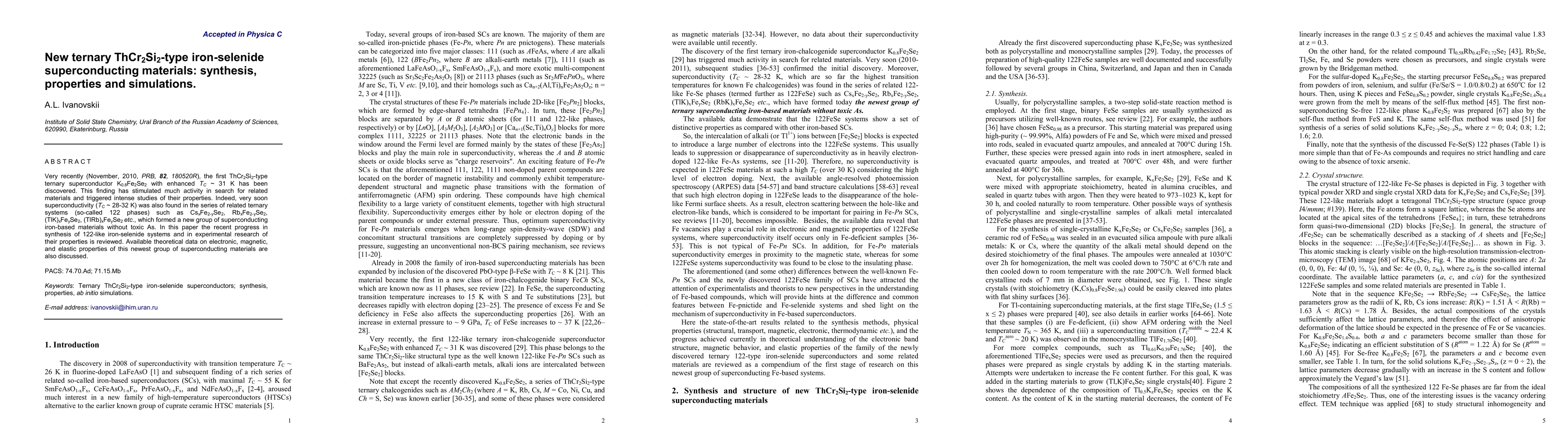 This paper reviews the synthesis and properties of newly discovered ThCr2Si2-type ternary iron-selenide superconductors, including K0.8Fe2Se2 and related 122 phases, which exhibit superconductivity at temperatures up to 32 K. It also discusses theoretical insights into their electronic, magnetic, and elastic properties.