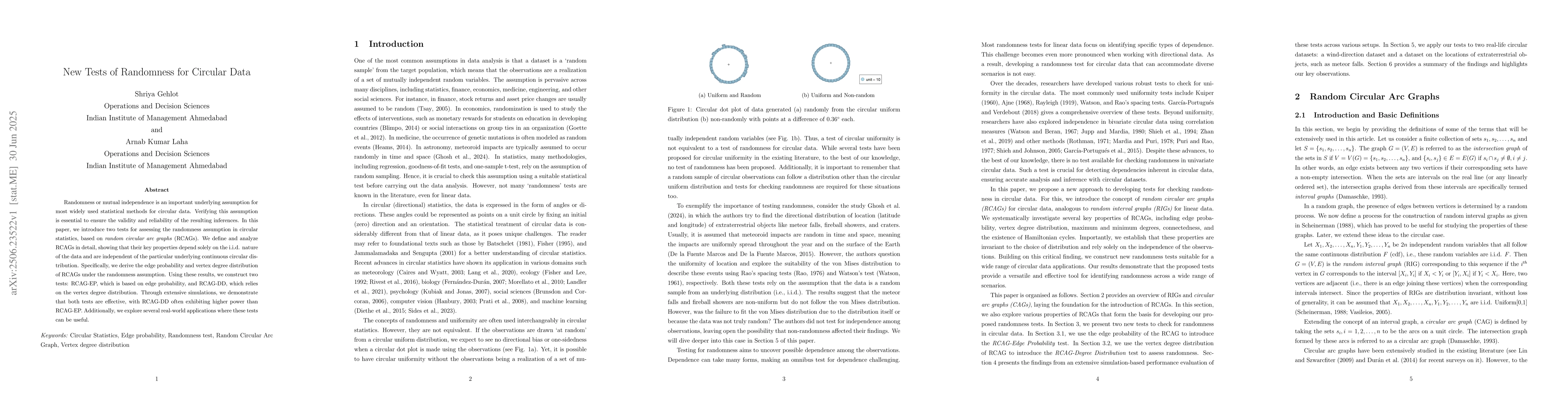 Randomness or mutual independence is an important underlying assumption for most widely used statistical methods for circular data. Verifying this assumption is essential to ensure the validity and reliability of the resulting inferences. In this paper, we introduce two tests for assessing the randomness assumption in circular statistics, based on random circular arc graphs (RCAGs). We define and analyze RCAGs in detail, showing that their key properties depend solely on the i.i.d. nature of the data and are independent of the particular underlying continuous circular distribution. Specifically, we derive the edge probability and vertex degree distribution of RCAGs under the randomness assumption. Using these results, we construct two tests: RCAG-EP, which is based on edge probability, and RCAG-DD, which relies on the vertex degree distribution. Through extensive simulations, we demonstrate that both tests are effective, with RCAG-DD often exhibiting higher power than RCAG-EP. Additionally, we explore several real-world applications where these tests can be useful.