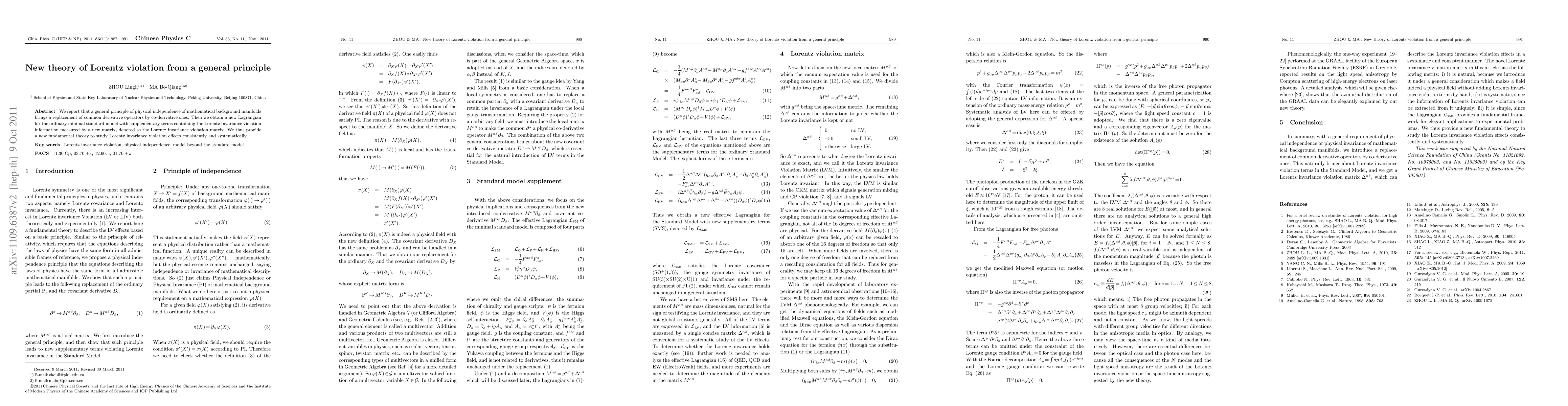 This paper proposes a new theory that replaces common derivative operators with co-derivatives based on a principle of physical independence, leading to a modified Lagrangian for the standard model with terms indicating Lorentz invariance violation, characterized by a new matrix. This offers a systematic framework for studying such violations.