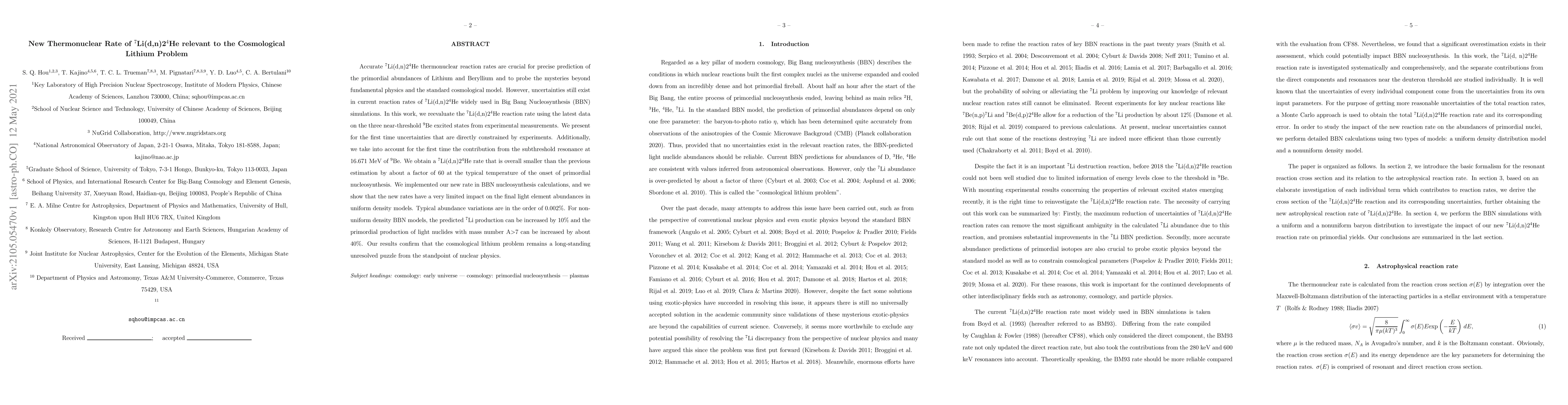 This paper reevaluates the thermonuclear reaction rate of 7Li(d,n)24He, finding it to be significantly lower than previous estimates, with implications for Big Bang Nucleosynthesis (BBN) models. The new rate has minimal impact on light element abundances in uniform density models but can increase 7Li production by 10% in nonuniform density models, reinforcing the cosmological lithium problem.