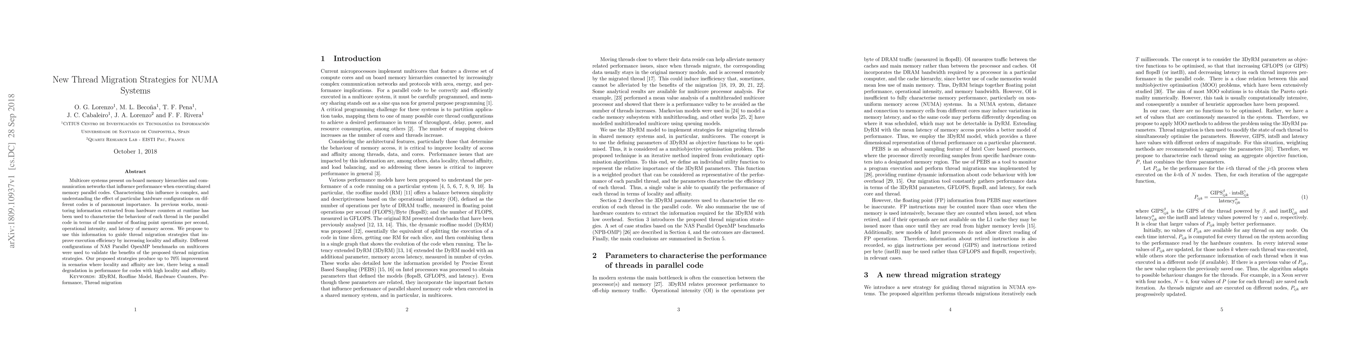 New thread migration strategies can improve execution efficiency on multicore systems by up to 70% in scenarios with low locality and affinity, while showing minimal performance impact in high-locality cases.