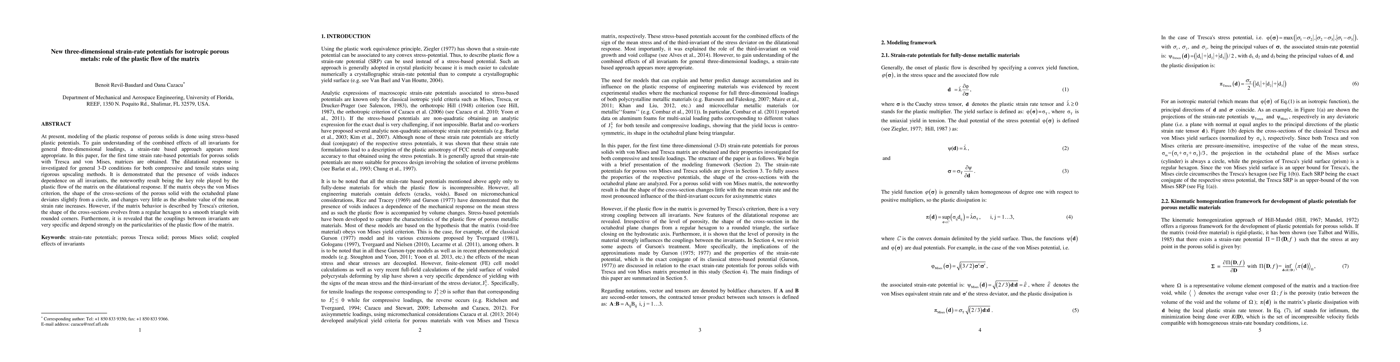 This paper introduces new strain-rate based potentials for modeling the plastic response of isotropic porous metals, emphasizing the role of the matrix's plastic flow. The study reveals that the matrix's behavior, whether under Tresca or von Mises criteria, significantly influences the dilatational response and the shape of the porous solid's cross-sections under 3-D loading conditions.