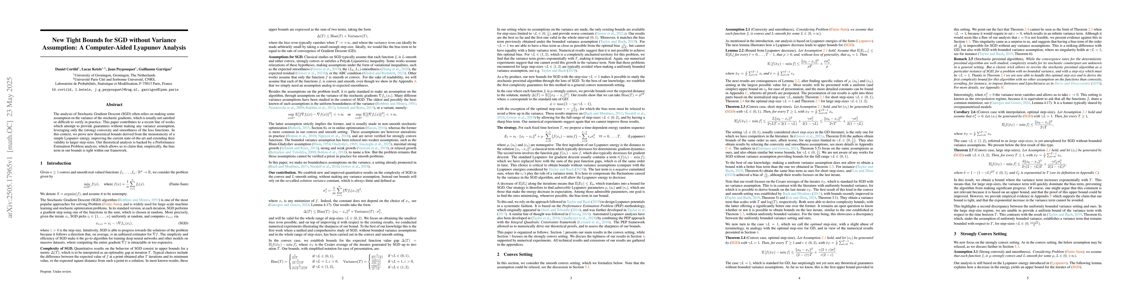 Researchers have developed new tight bounds for Stochastic Gradient Descent (SGD) that don't rely on variance assumptions, instead using the convexity and smoothness of loss functions to provide guarantees.
