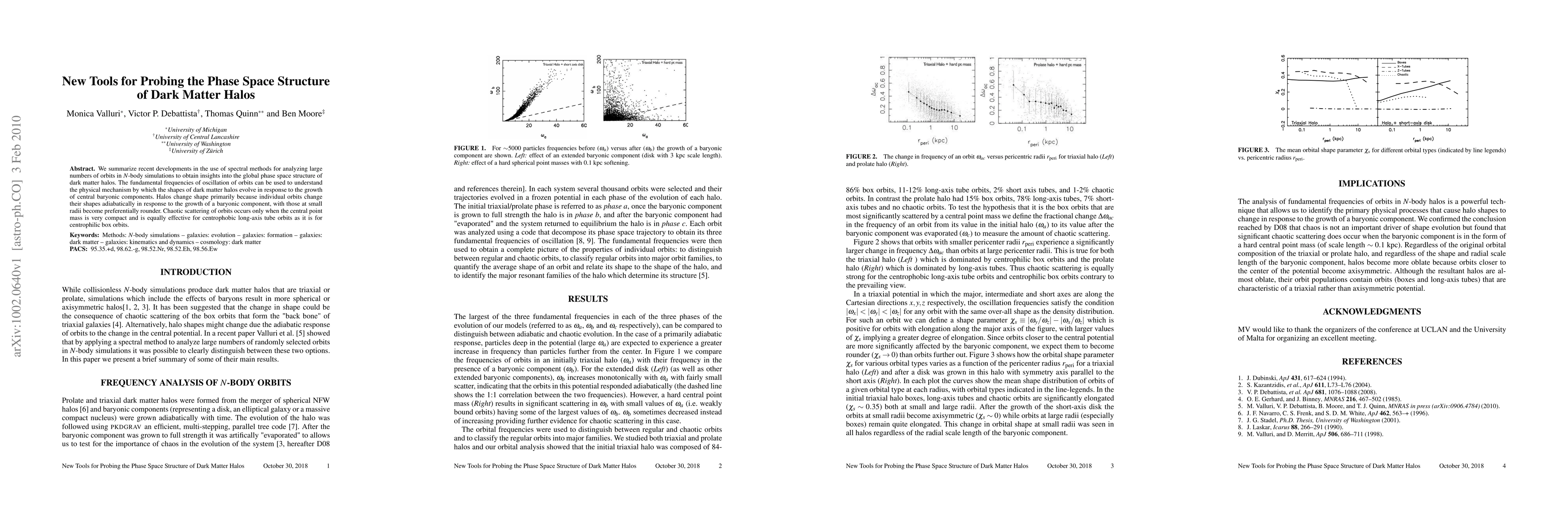 We summarize recent developments in the use of spectral methods for analyzing large numbers of orbits in N-body simulations to obtain insights into the global phase space structure of dark matter halos. The fundamental frequencies of oscillation of orbits can be used to understand the physical mechanism by which the shapes of dark matter halos evolve in response to the growth of central baryonic components. Halos change shape primarily because individual orbits change their shapes adiabatically in response to the growth of a baryonic component, with those at small radii become preferentially rounder. Chaotic scattering of orbits occurs only when the central point mass is very compact and is equally effective for centrophobic long-axis tube orbits as it is for centrophilic box orbits.