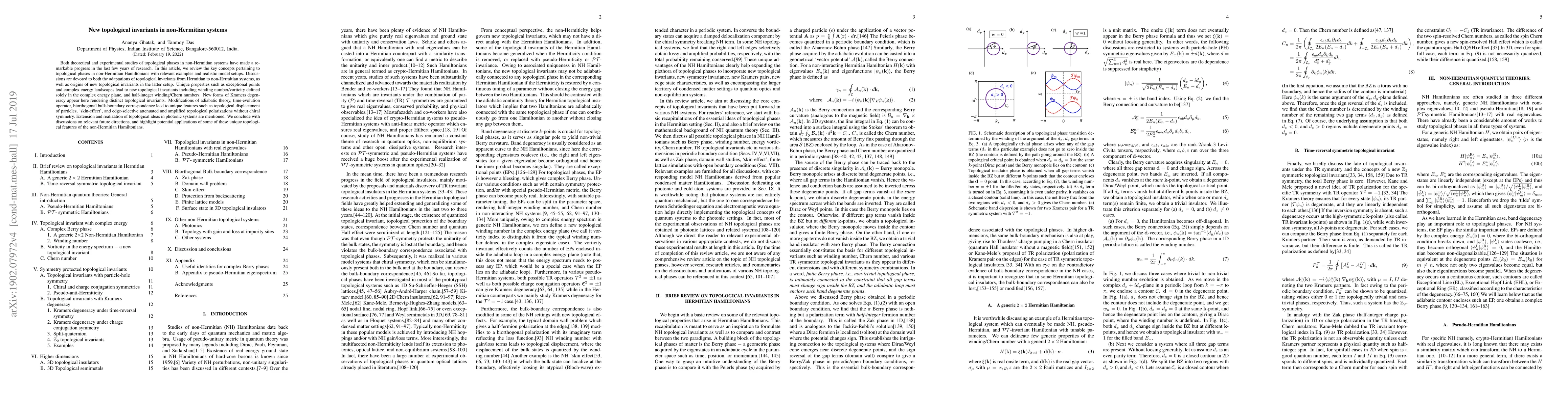 The research methodology involves reviewing key concepts pertaining to topological phases in non-Hermitian Hamiltonians, adapting topological invariants from Hermitian systems, and identifying new topological invariants in non-Hermitian setups. Realistic model setups and examples are provided to illustrate unique properties such as exceptional points and complex energy landscapes.
