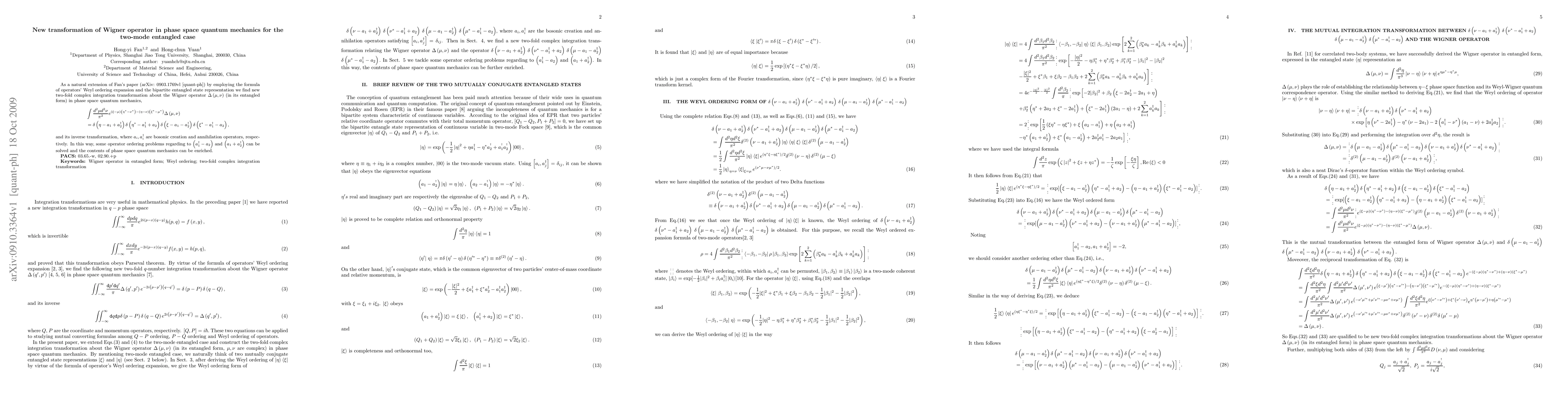 The paper presents a novel method for transforming the Wigner operator in phase space quantum mechanics, specifically for two-mode entangled systems, using Weyl ordering and complex integration.