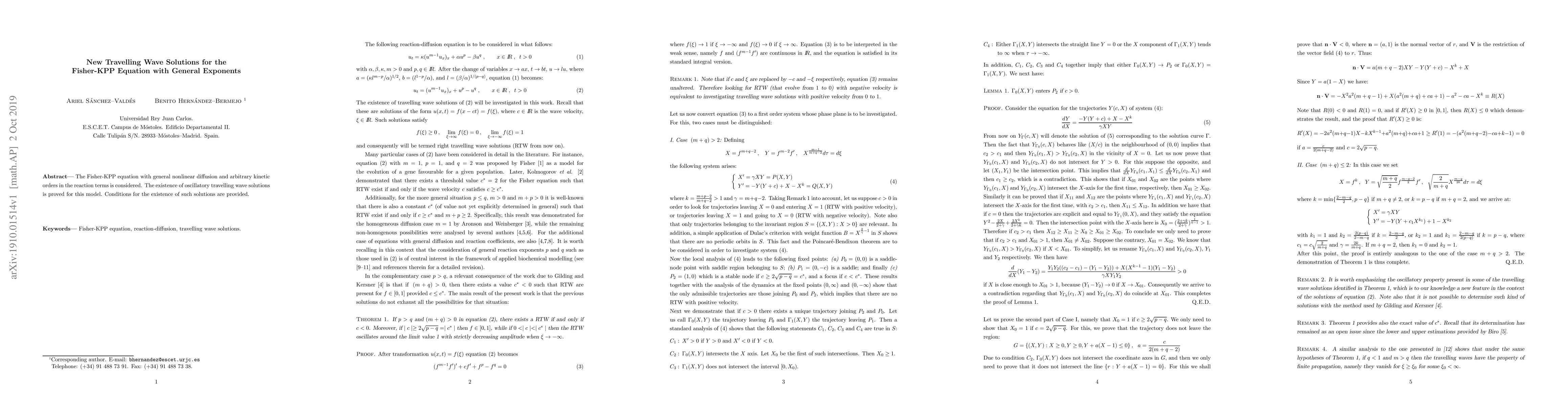 Summary: This paper proves the existence of oscillatory travelling wave solutions for the Fisher-KPP equation with general nonlinear diffusion and reaction terms. It also provides conditions under which these solutions can occur.