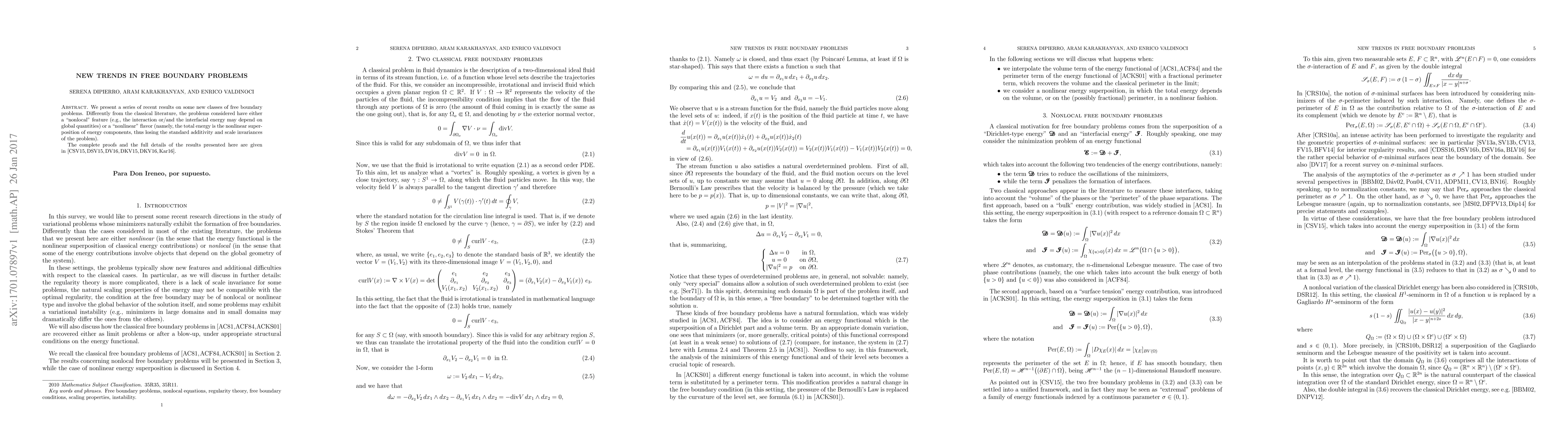 We present a series of recent results on some new classes of free boundary problems. Differently from the classical literature, the problems considered have either a "nonlocal" feature (e.g., the interaction or/and the interfacial energy may depend on global quantities) or a "nonlinear" flavor (namely, the total energy is the nonlinear superposition of energy components, thus losing the standard additivity and scale invariances of the problem).