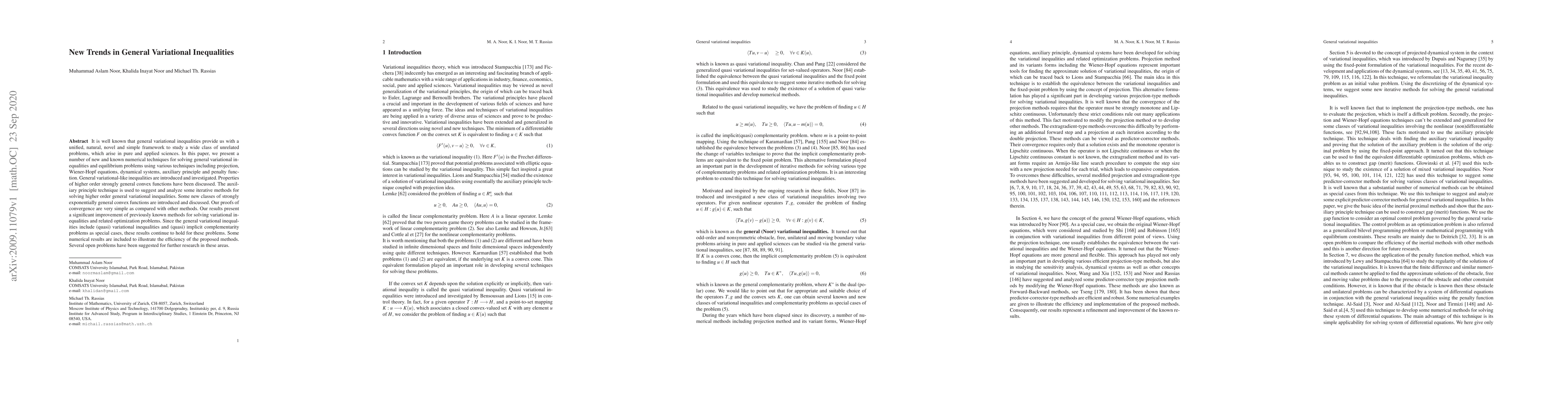 This paper explores new numerical techniques for solving general variational inequalities, employing methods like projection, Wiener-Hopf equations, and iterative methods based on the auxiliary principle. It introduces higher-order general convex functions and presents simple proofs of convergence, significantly improving existing methods.