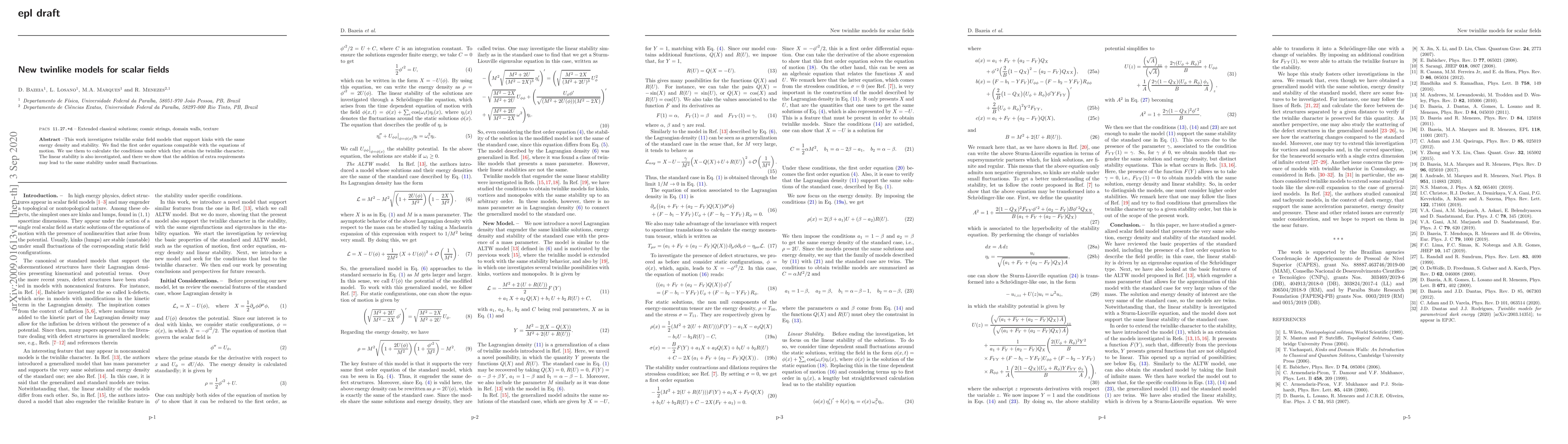 This paper explores twinlike scalar field models with kinks having identical energy density and stability, deriving first-order equations compatible with the equations of motion and determining conditions for their twinlike character. It also investigates linear stability, showing that additional requirements can maintain stability under small fluctuations.