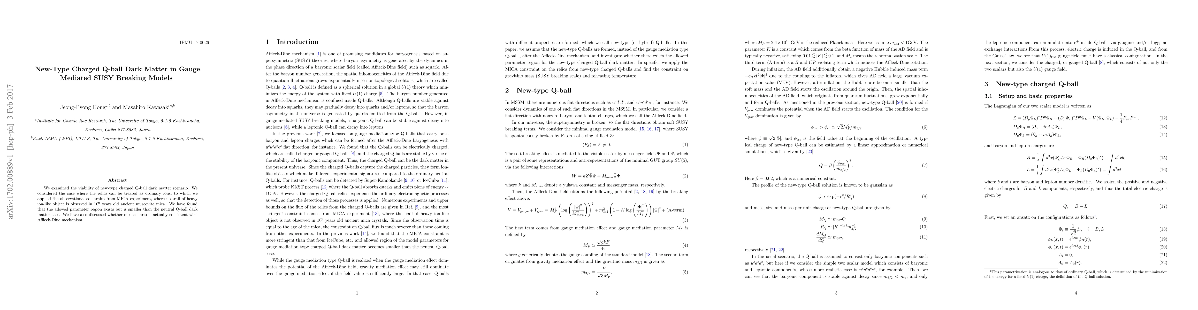 We examined the viability of new-type charged Q-ball dark matter scenario. We considered the case where the relics can be treated as ordinary ions, to which we applied the observational constraint from MICA experiment, where no trail of heavy ion-like object is observed in $10^9$ years old ancient muscovite mica. We have found that the allowed parameter region exists but is smaller than the neutral Q-ball dark matter case. We have also discussed whether our scenario is actually consistent with Affleck-Dine mechanism.