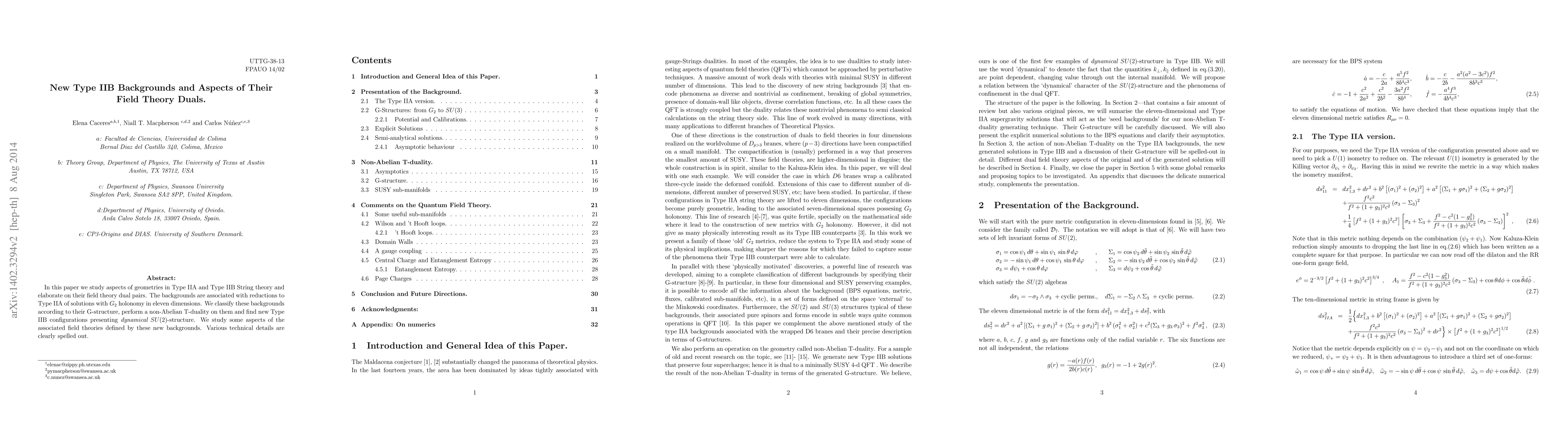 In this paper we study aspects of geometries in Type IIA and Type IIB String theory and elaborate on their field theory dual pairs. The backgrounds are associated with reductions to Type IIA of solutions with $G_2$ holonomy in eleven dimensions. We classify these backgrounds according to their G-structure, perform a non-Abelian T-duality on them and find new Type IIB configurations presenting {\it dynamical} $SU(2)$-structure. We study some aspects of the associated field theories defined by these new backgrounds. Various technical details are clearly spelled out.