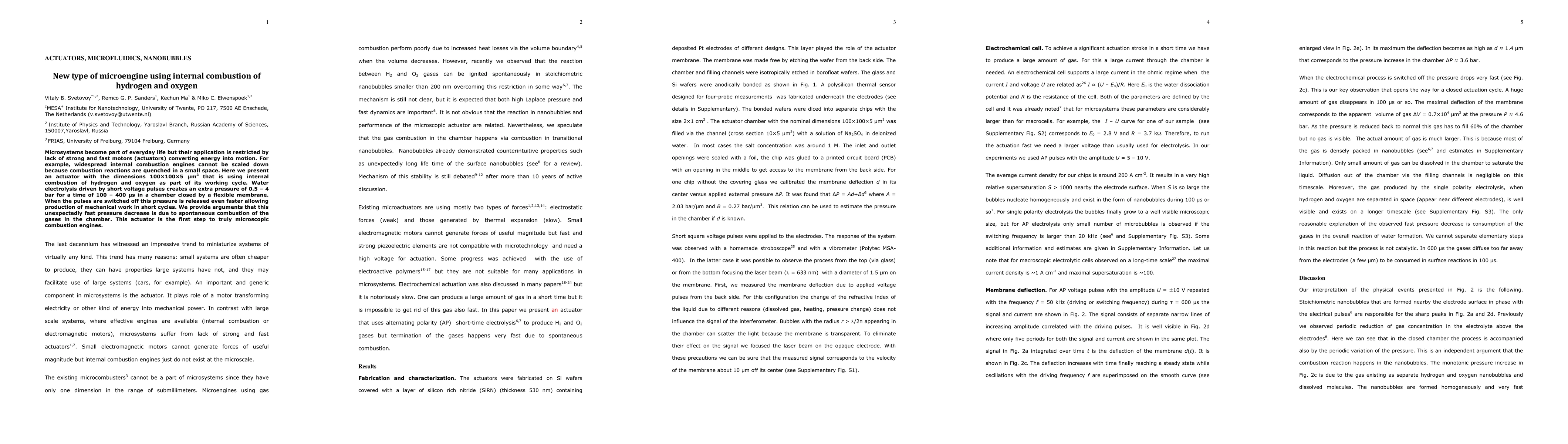 The paper introduces a novel microengine design that uses internal combustion of hydrogen and oxygen, facilitated by electrolysis-driven pressure changes in a microchamber, as a potential solution for microscale actuation.