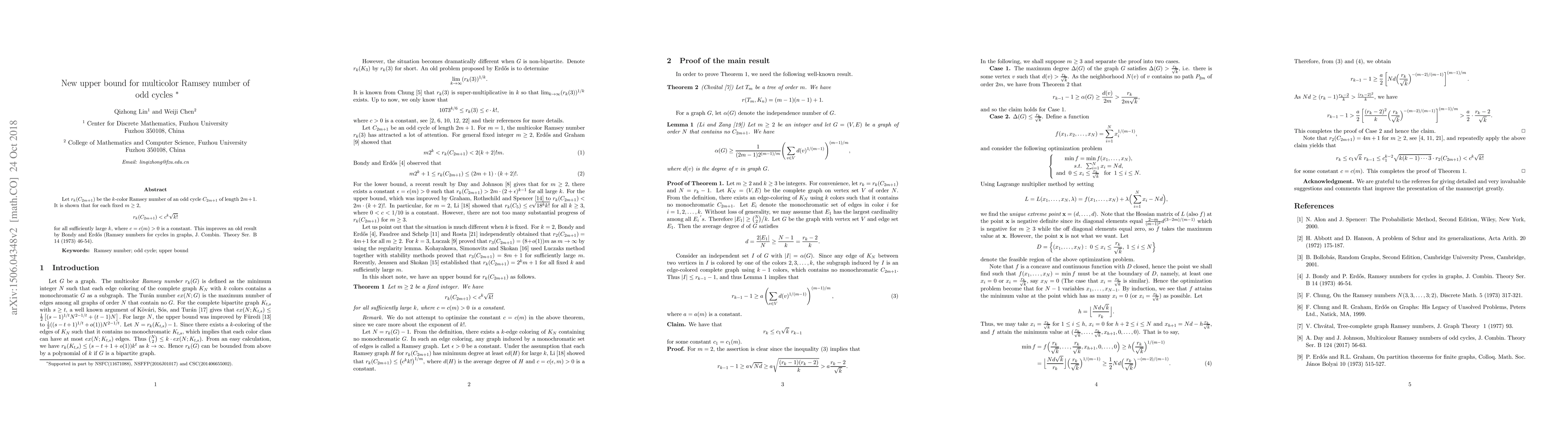Let $r_k(C_{2m+1})$ be the $k$-color Ramsey number of an odd cycle $C_{2m+1}$