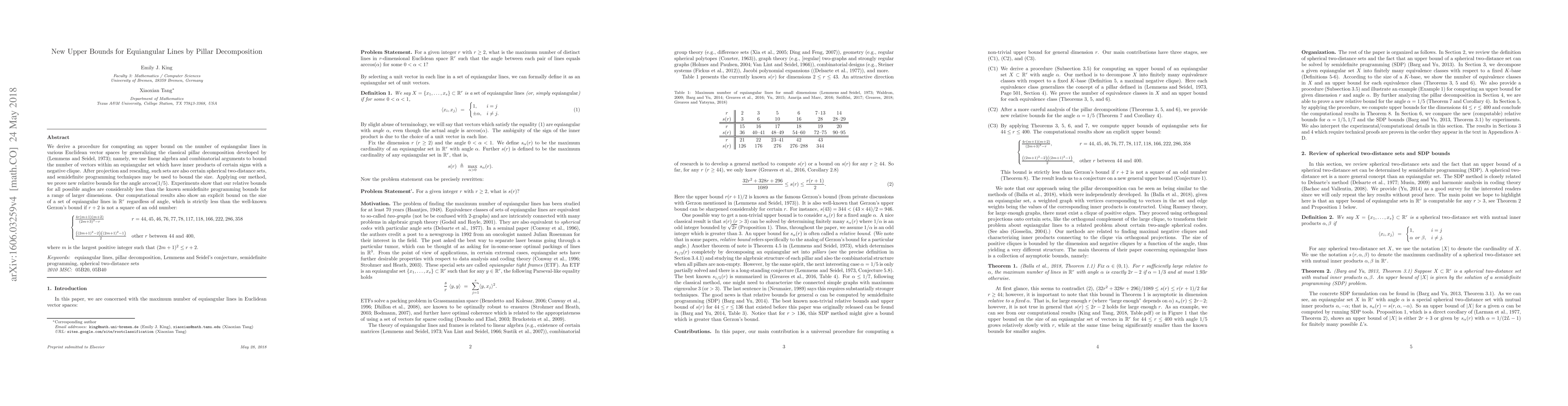 This paper presents a novel method for determining upper bounds on equiangular lines using a generalized pillar decomposition, linear algebra, and combinatorial arguments. The new relative bounds for specific angles and dimensions are shown to be significantly tighter than existing semidefinite programming bounds.