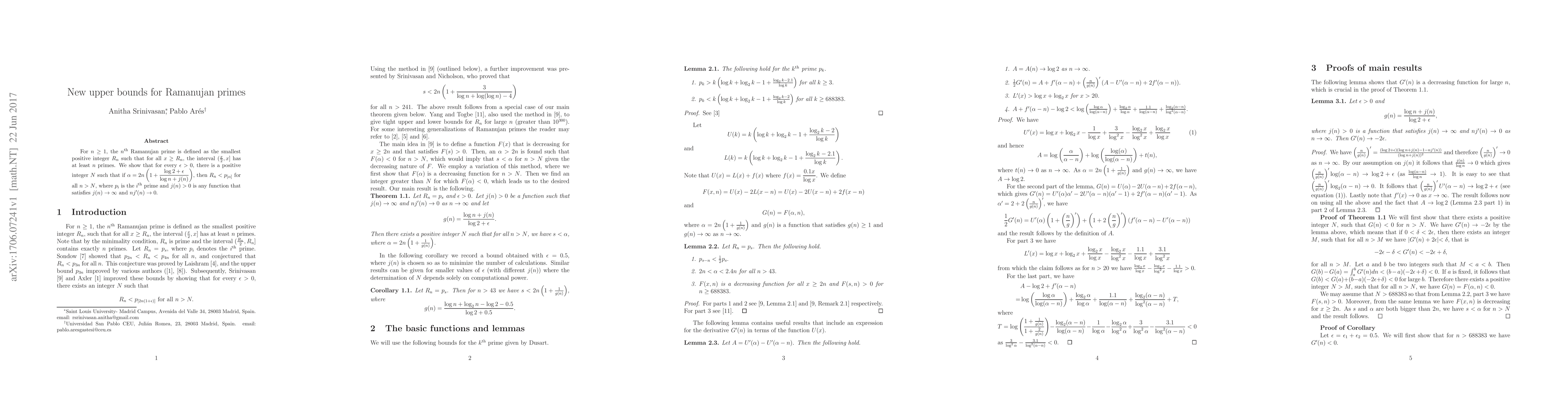 For $n\ge 1$, the $n^{\rm th}$ Ramanujan prime is defined as the smallest positive integer $R_n$ such that for all $x\ge R_n$, the interval $(\frac{x}{2}, x]$ has at least $n$ primes. We show that for every $\epsilon>0$, there is a positive integer $N$ such that if $\alpha=2n\left(1+\dfrac{\log 2+\epsilon}{\log n+j(n)}\right)$, then $R_n< p_{[\alpha]}$ for all $n>N$, where $p_i$ is the $i^{\rm th}$ prime and $j(n)>0$ is any function that satisfies $j(n)\to \infty$ and $nj'(n)\to 0$.