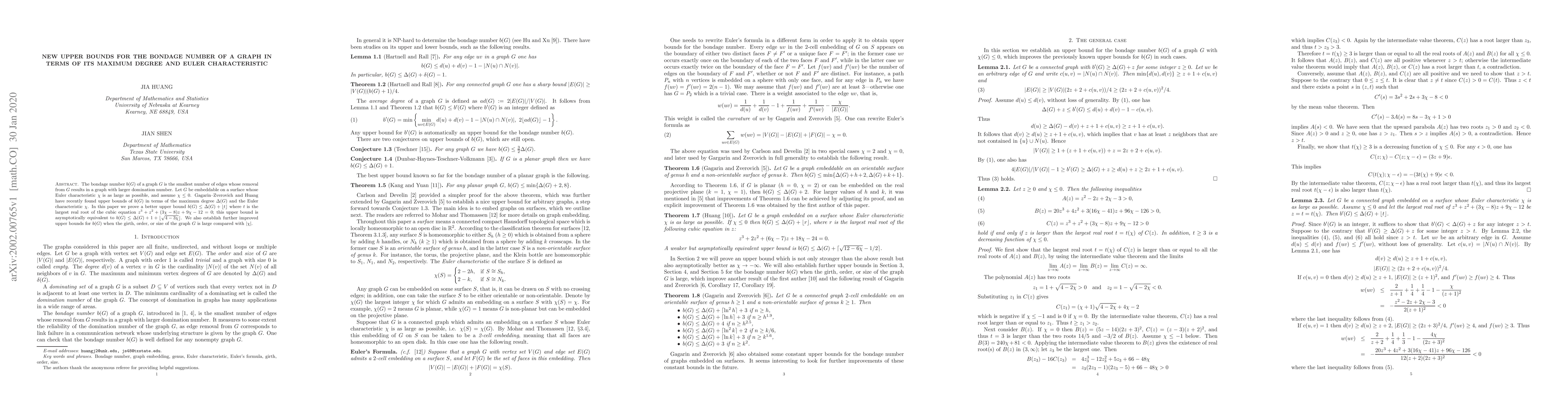The bondage number $b(G)$ of a graph $G$ is the smallest number of edges whose removal from $G$ results in a graph with larger domination number. Let $G$ be embeddable on a surface whose Euler characteristic $\chi$ is as large as possible, and assume $\chi\leq0$. Gagarin-Zverovich and Huang have recently found upper bounds of $b(G)$ in terms of the maximum degree $\Delta(G)$ and the Euler characteristic $\chi(G)=\chi$. In this paper we prove a better upper bound $b(G)\leq\Delta(G)+\lfloor t\rfloor$ where $t$ is the largest real root of the cubic equation $z^3 + z^2 + (3\chi - 8)z + 9\chi - 12=0$; this upper bound is asymptotically equivalent to $b(G)\leq\Delta(G)+1+\lfloor \sqrt{4-3\chi} \rfloor$. We also establish further improved upper bounds for $b(G)$ when the girth, order, or size of the graph $G$ is large compared with its Euler characteristic $\chi$.