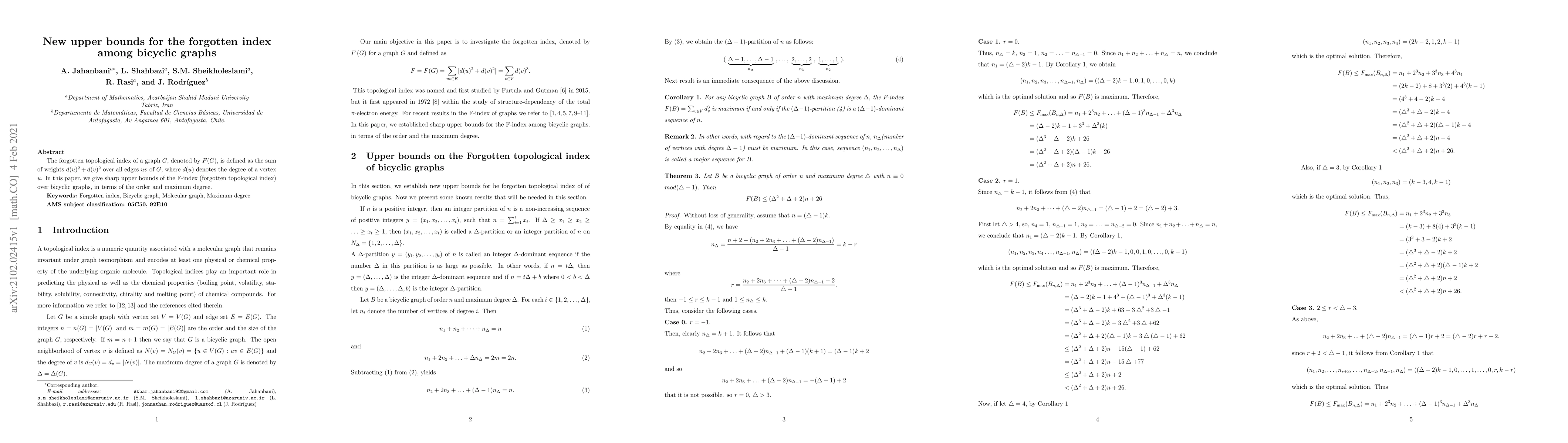 This paper establishes sharp upper bounds for the forgotten topological index, $F(G)$, among bicyclic graphs, defined as the sum of squared degrees of vertices connected by each edge. The results are expressed in terms of the graph's order and maximum degree.