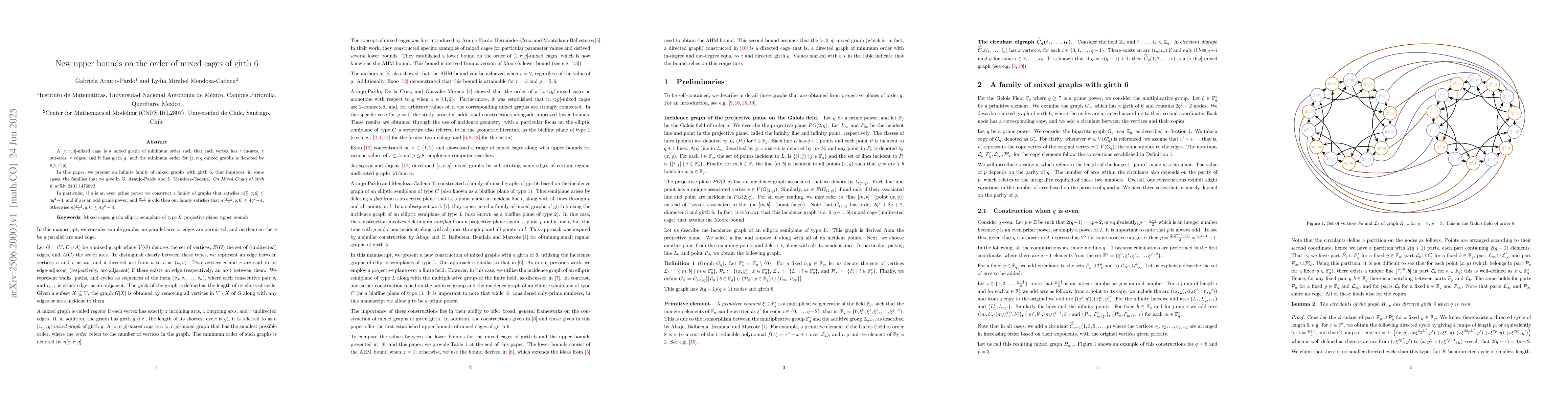 A $[z,r;g]$-mixed cage is a mixed graph of minimum order such that each vertex has $z$ in-arcs, $z$ out-arcs, $r$ edges, and it has girth $g$, and the minimum order for $[z,r;g]$-mixed graphs is denoted by $n[z,r;g]$. In this paper, we present an infinite family of mixed graphs with girth $6$, that improves, in some cases, the families that we give in G. Araujo-Pardo and L. Mendoza-Cadena. \textit{On Mixed Cages of girth 6}, arXiv:2401.14768v2. In particular, if $q$ is an even prime power we construct a family of graphs that satisfies $n[\frac{q}{4},q;6]\leq 4q^2-4$, and if $q$ is an odd prime power, and $\frac{q-3}{2}$ is odd then our family satisfies that $n[\frac{q-1}{4},q;6]\leq 4q^2-4$, otherwise $n[\frac{q-3}{4},q;6]\leq 4q^2-4$.