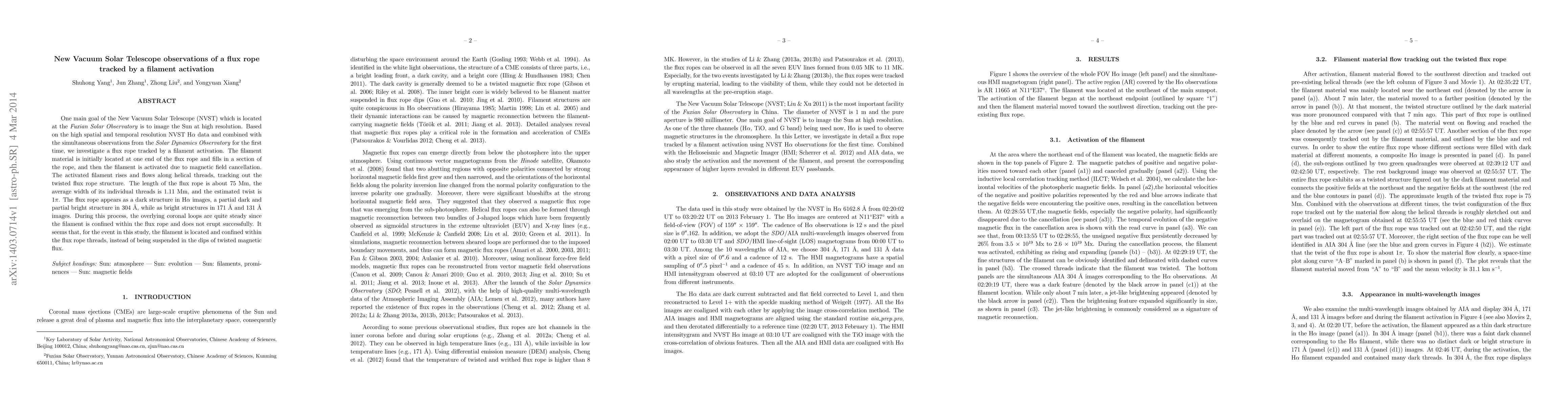 The New Vacuum Solar Telescope (NVST) observed a flux rope tracked by filament activation, with the filament initially filling a section of the rope and later rising along its helical threads. The flux rope remains confined, preventing the filament from erupting.