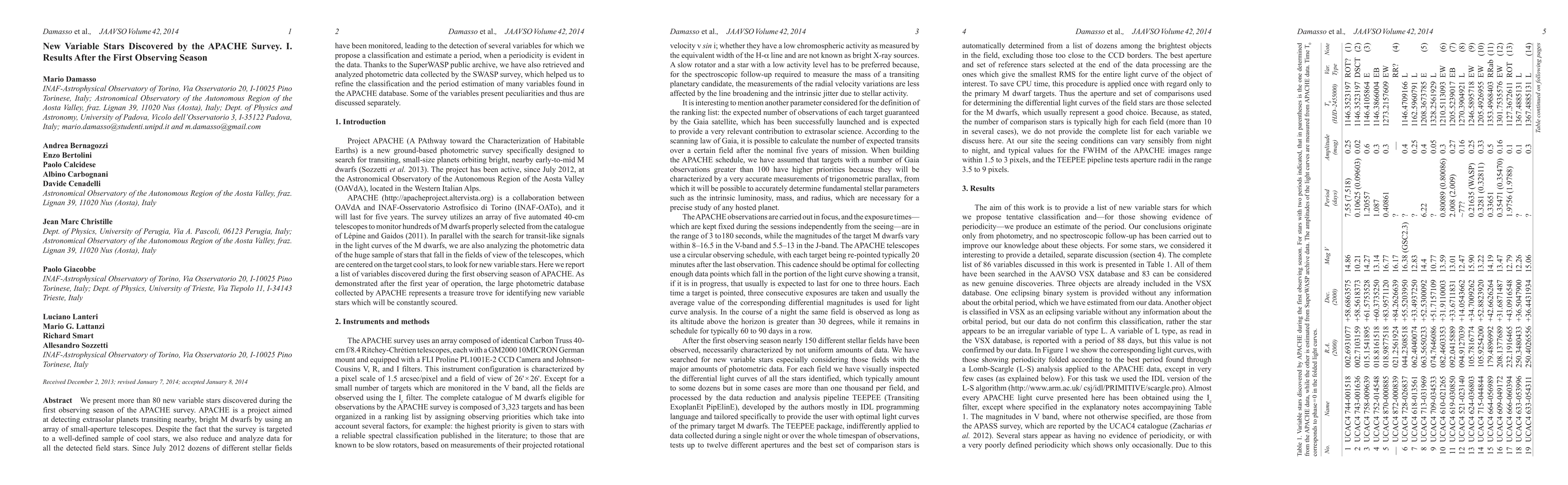 The APACHE survey discovered over 80 new variable stars during its first observing season, despite its primary focus on detecting extrasolar planets around nearby M dwarfs. The survey analyzed data from numerous stellar fields, refined classifications and period estimates with the help of SuperWASP archival data, and highlighted unique characteristics of some variables.