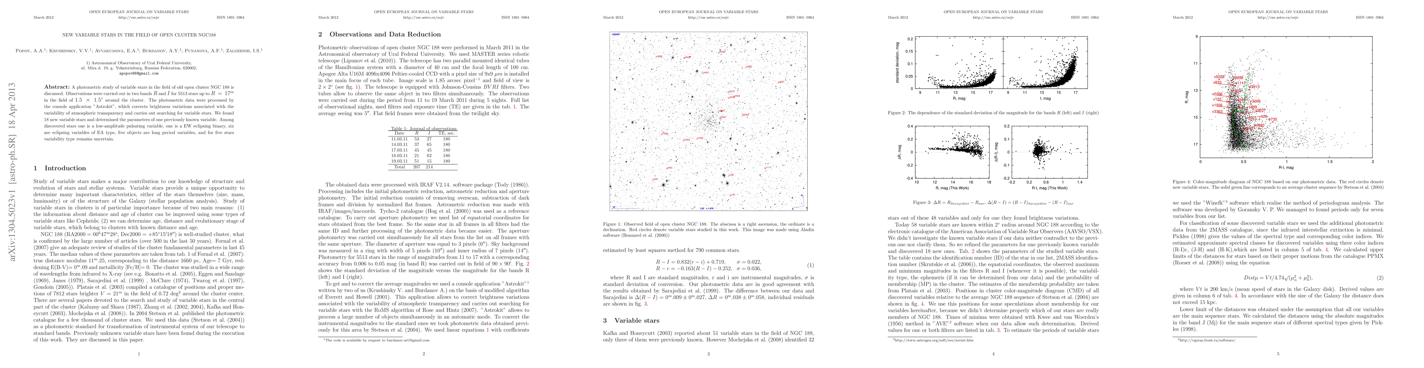 A photometric study identified 18 new variable stars in the field of the open cluster NGC188, using R and I band observations for 5513 stars. The study also refined parameters for a previously known variable, categorizing the new discoveries into different types of variable stars.