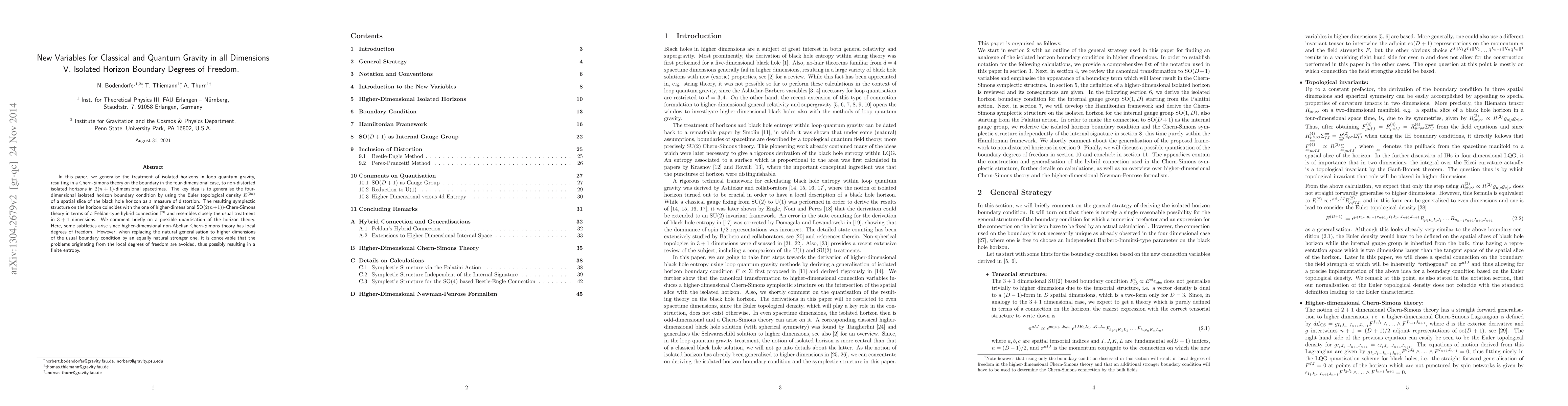 This paper extends the concept of isolated horizons in loop quantum gravity to higher dimensions, proposing a Chern-Simons theory on the boundary. It introduces a new boundary condition using the Euler topological density to measure distortion, leading to a consistent symplectic structure and potential quantisation of the horizon theory, despite challenges from local degrees of freedom in higher-dimensional non-Abelian Chern-Simons theory.