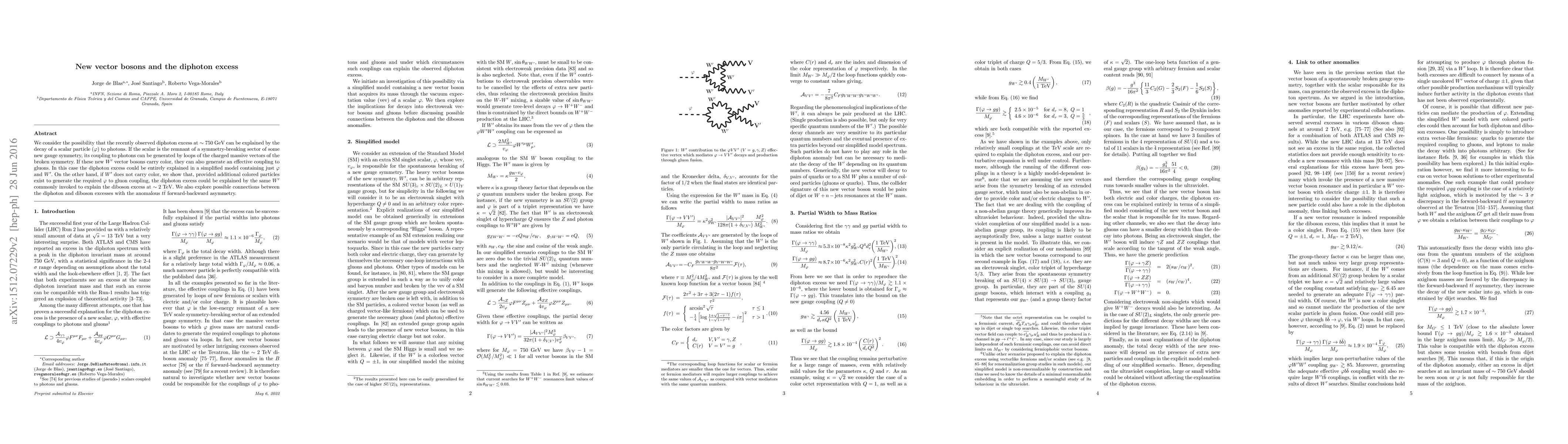 We consider the possibility that the recently observed diphoton excess at $\sim 750$ GeV can be explained by the decay of a scalar particle ($\varphi$) to photons. If the scalar is the remnant of a symmetry-breaking sector of some new gauge symmetry, its coupling to photons can be generated by loops of the charged massive vectors of the broken symmetry. If these new $W^\prime$ vector bosons carry color, they can also generate an effective coupling to gluons. In this case the diphoton excess could be entirely explained in a simplified model containing just $\varphi$ and $W^\prime$. On the other hand if $W^{\prime}$ does not carry color, we show that, provided additional colored particles exist to generate the required $\varphi$ to gluon coupling, the diphoton excess could be explained by the same $W^{\prime}$ commonly invoked to explain the diboson excess at $\sim 2$ TeV. We also explore possible connections between the diphoton and diboson excesses with the anomalous $t\bar{t}$ forward-backward asymmetry.