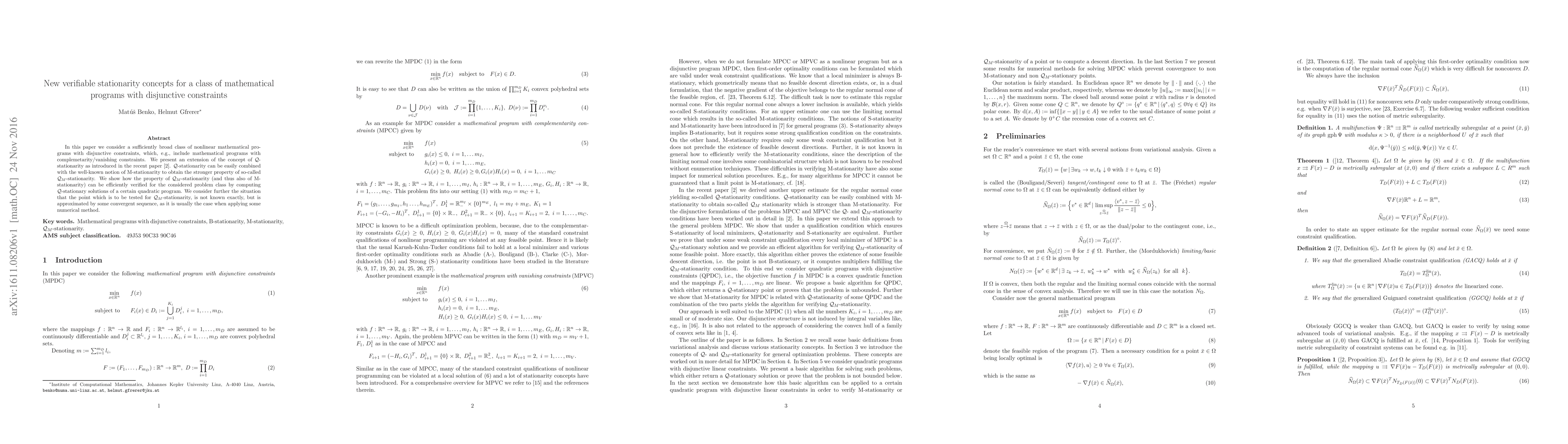 In this paper we consider a sufficiently broad class of nonlinear mathematical programs with disjunctive constraints, which, e.g., include mathematical programs with complemetarity/vanishing constraints. We present an extension of the concept of ${\mathcal Q}$-stationarity as introduced in the recent paper [2]. ${\mathcal Q}$-stationarity can be easily combined with the well-known notion of M-stationarity to obtain the stronger property of so-called ${\mathcal Q}_M$-stationarity. We show how the property of ${\mathcal Q}_M$-stationarity (and thus also of M-stationarity) can be efficiently verified for the considered problem class by computing ${\mathcal Q}$-stationary solutions of a certain quadratic program. We consider further the situation that the point which is to be tested for ${\mathcal Q}_M$-stationarity, is not known exactly, but is approximated by some convergent sequence, as it is usually the case when applying some numerical method.