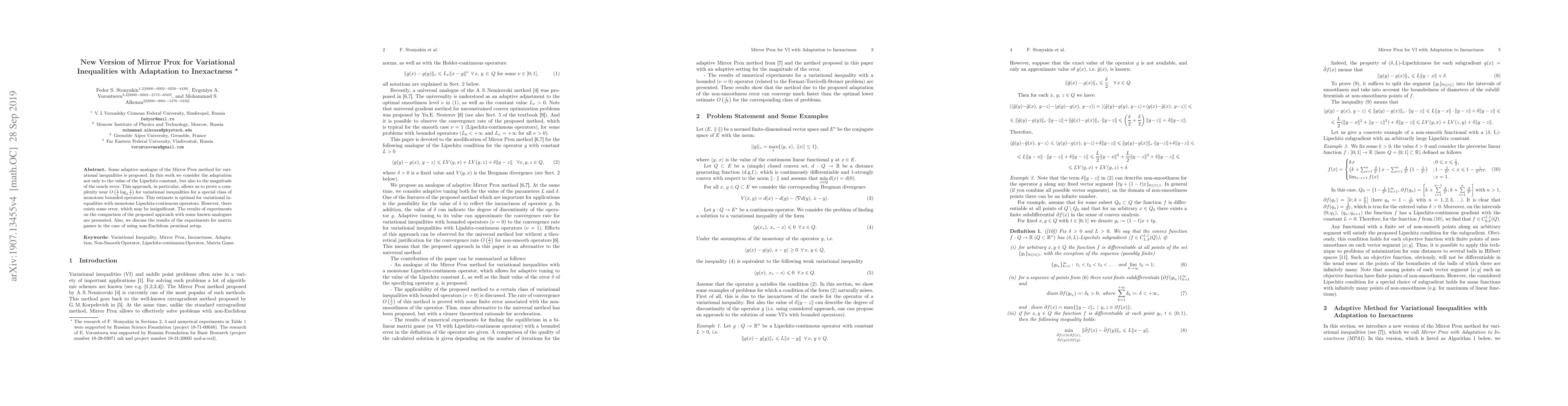 This paper proposes an adaptive version of the Mirror Prox method for variational inequalities, adapting to both the Lipschitz constant and oracle error. The method achieves an optimal complexity of $O\left(\frac{1}{\varepsilon}\log_2\frac{1}{\varepsilon}\right)$ for a specific class of monotone bounded operators, and experimental results compare its performance favorably against known methods.