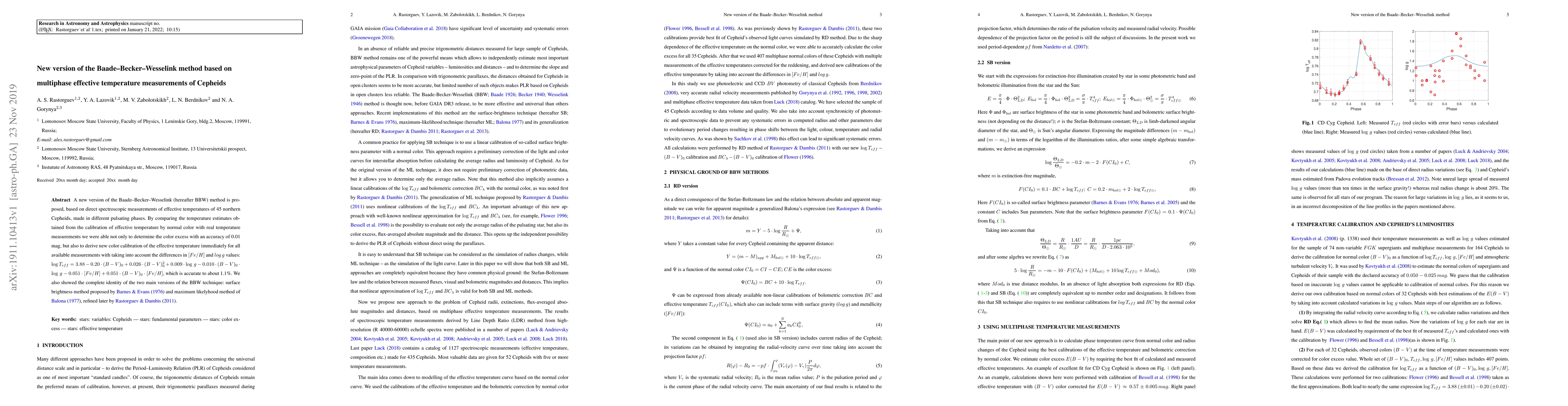 A new version of the Baade--Becker--Wesselink (hereafter BBW) method is proposed, based on direct spectroscopic measurements of effective temperatures of 45 northern Cepheids, made in different pulsating phases. By comparing the temperature estimates obtained from the calibration of effective temperature by normal color with real temperature measurements we were able not only to determine the color excess with an accuracy of 0.01 mag, but also to derive new color calibration of the effective temperature immediately for all available measurements with taking into account the differences in [Fe/H] and log g values: log Teff = 3.88 - 0.20 (B-V)o + 0.026 (B-V)o^2 + 0.009 log g - 0.010 (B-V)o log g - 0.051 [Fe/H] + 0.051 (B-V)o [Fe/H], which is accurate to about 1.1%. We also showed the complete identity of the two main versions of the BBW technique: surface brightness method proposed by Barnes and Evans (1976) and maximum likelyhood method of Balona (1977), refined later by Rastorguev and Dambis (2010).