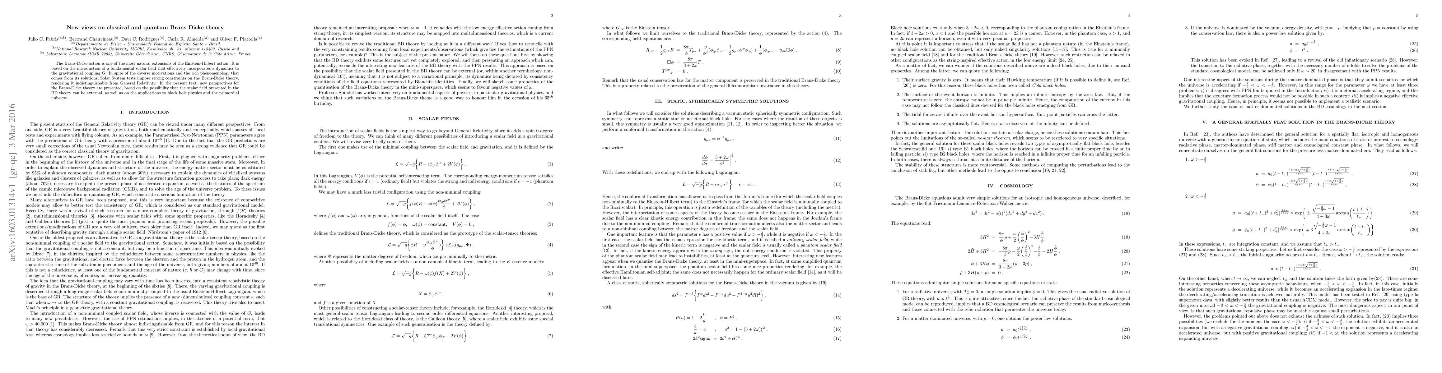 The Brans-Dicke action is one of the most natural extensions of the Einstein-Hilbert action. It is based on the introduction of a fundamental scalar field that effectively incorporates a dynamics to the gravitational coupling $G$. In spite of the diverse motivations and the rich phenomenology that comes from its solutions, Solar System tests impose strong constraints on the Brans-Dicke theory, rendering it indistinguishable from General Relativity. In the present text, new perspectives for the Brans-Dicke theory are presented, based on the possibility that the scalar field presented in the BD theory can be external, as well as on the applications to black hole physics and the primordial universe.