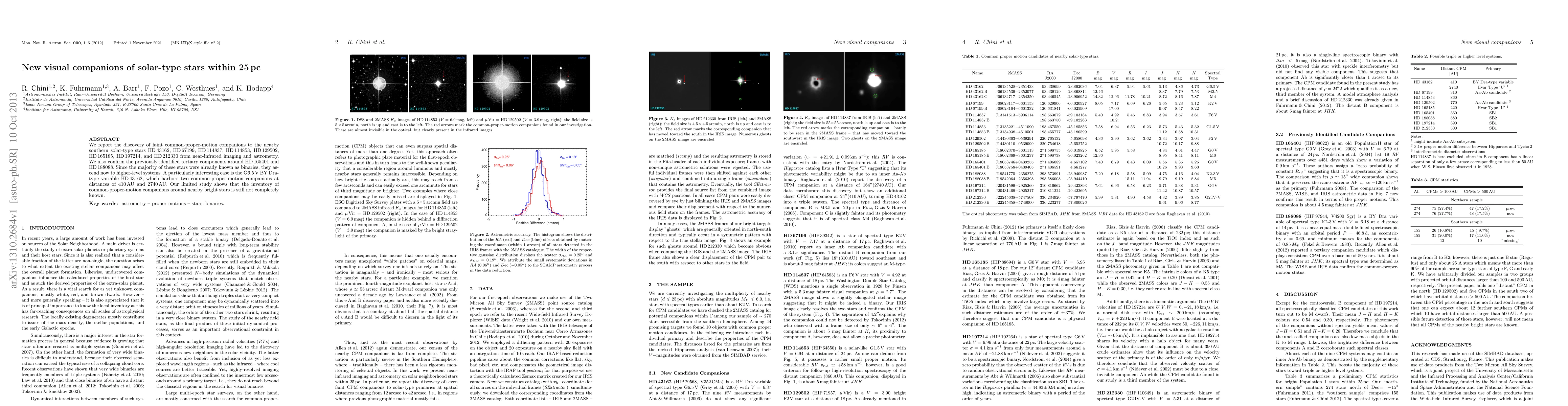 The paper reports the discovery of faint companions to nearby southern solar-type stars using near-infrared imaging and astrometry, including two for the variable star HD43162. It highlights that the inventory of common-proper-motion companions around nearby bright stars remains incomplete.