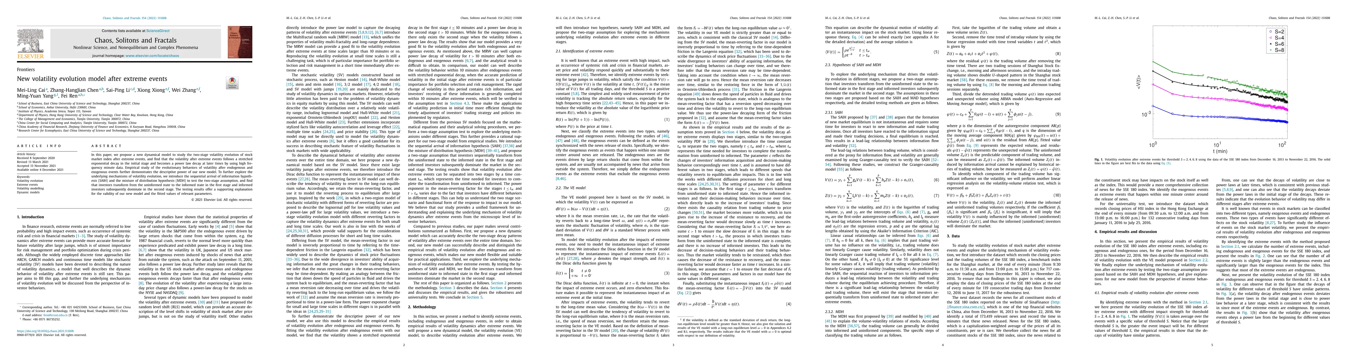 In this paper, we propose a new dynamical model to study the two-stage volatility evolution of stock market index after extreme events, and find that the volatility after extreme events follows a stretched exponential decay in the initial stage and becomes a power law decay at later times by using high frequency minute data. Empirical study of the evolutionary behaviors of volatility after endogenous and exogenous events further demonstrates the descriptive power of our new model. To further explore the underlying mechanisms of volatility evolution, we introduce the sequential arrival of information hypothesis (SAIH) and the mixture of distribution hypothesis (MDH) to test the two-stage assumption, and find that investors transform from the uninformed state to the informed state in the first stage and informed investors subsequently dominate in the second stage. The testing results offer a supporting explanation for the validity of our new model and the fitted values of relevant parameters.