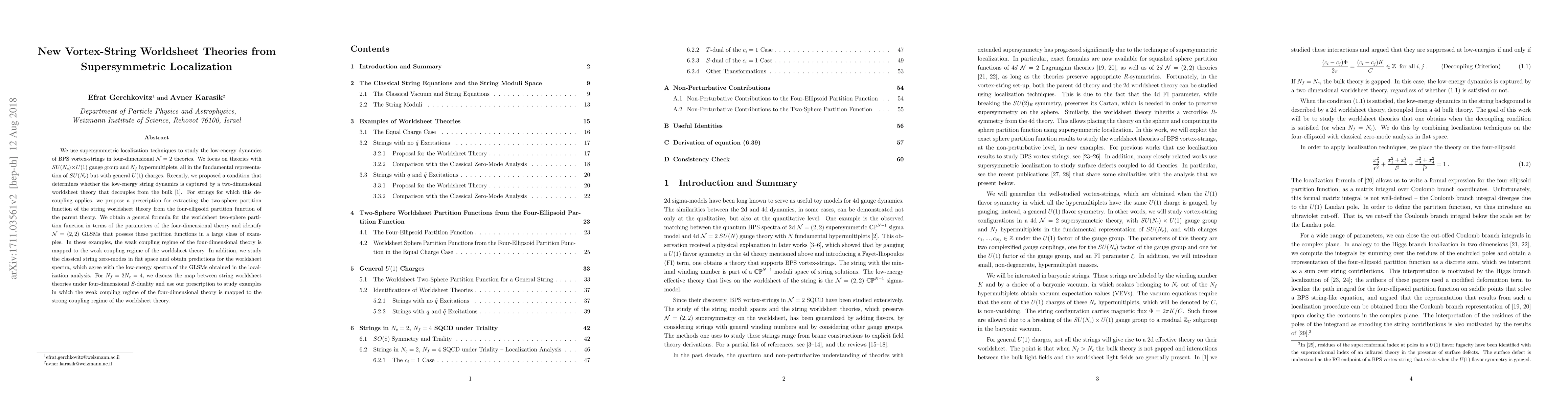 We use supersymmetric localization techniques to study the low-energy dynamics of BPS vortex-strings in four-dimensional N=2 theories. We focus on theories with SU(Nc)xU(1) gauge group and Nf hypermultiplets, all in the fundamental representation of SU(Nc) but with general U(1) charges. Recently, we proposed a condition that determines whether the low-energy string dynamics is captured by a two-dimensional worldsheet theory that decouples from the bulk. For strings for which this decoupling applies, we propose a prescription for extracting the two-sphere partition function of the string worldsheet theory from the four-ellipsoid partition function of the parent theory. We obtain a general formula for the worldsheet two-sphere partition function in terms of the parameters of the four-dimensional theory and identify N=(2,2) GLSMs that possess these partition functions in a large class of examples. In these examples, the weak coupling regime of the four-dimensional theory is mapped to the weak coupling regime of the worldsheet theory. In addition, we study the classical string zero-modes in flat space and obtain predictions for the worldsheet spectra, which agree with the low-energy spectra of the GLSMs obtained in the localization analysis. For Nf=2Nc=4, we discuss the map between string worldsheet theories under four-dimensional S-duality and use our prescription to study examples in which the weak coupling regime of the four-dimensional theory is mapped to the strong coupling regime of the worldsheet theory.