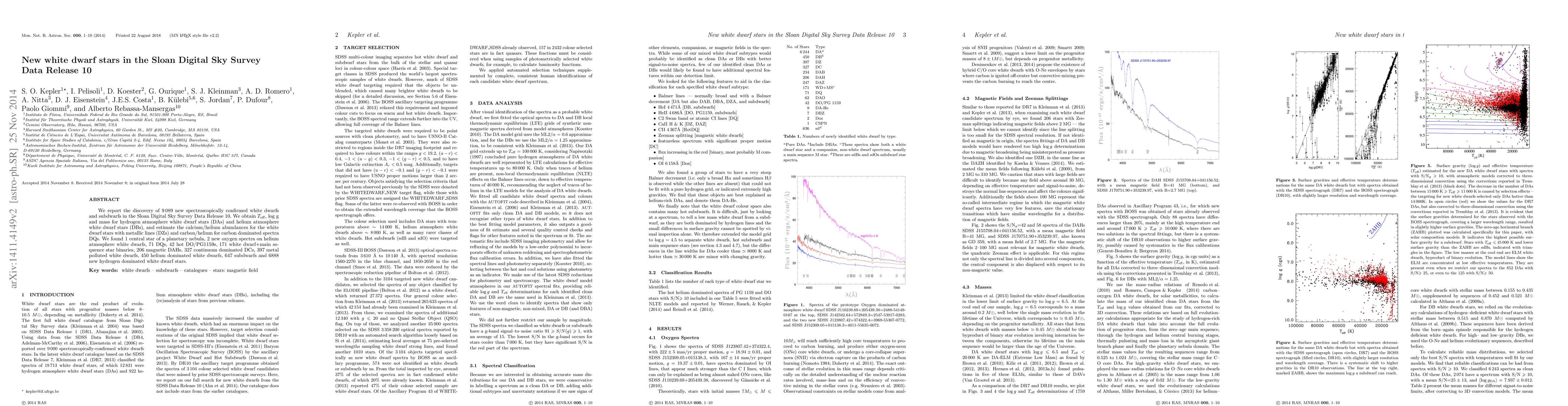 We report the discovery of 9 089 new spectroscopically confirmed white dwarfs and subdwarfs in the Sloan Digital Sky Survey Data Release 10. We obtain Teff, log g and mass for hydrogen atmosphere white dwarf stars (DAs) and helium atmosphere white dwarf stars (DBs), and estimate the calcium/helium abundances for the white dwarf stars with metallic lines (DZs) and carbon/helium for carbon dominated spectra DQs. We found 1 central star of a planetary nebula, 2 new oxygen spectra on helium atmosphere white dwarfs, 71 DQs, 42 hot DO/PG1159s, 171 white dwarf+main sequence star binaries, 206 magnetic DAHs, 327 continuum dominated DCs, 397 metal polluted white dwarfs, 450 helium dominated white dwarfs, 647 subdwarfs and 6888 new hydrogen dominated white dwarf stars.