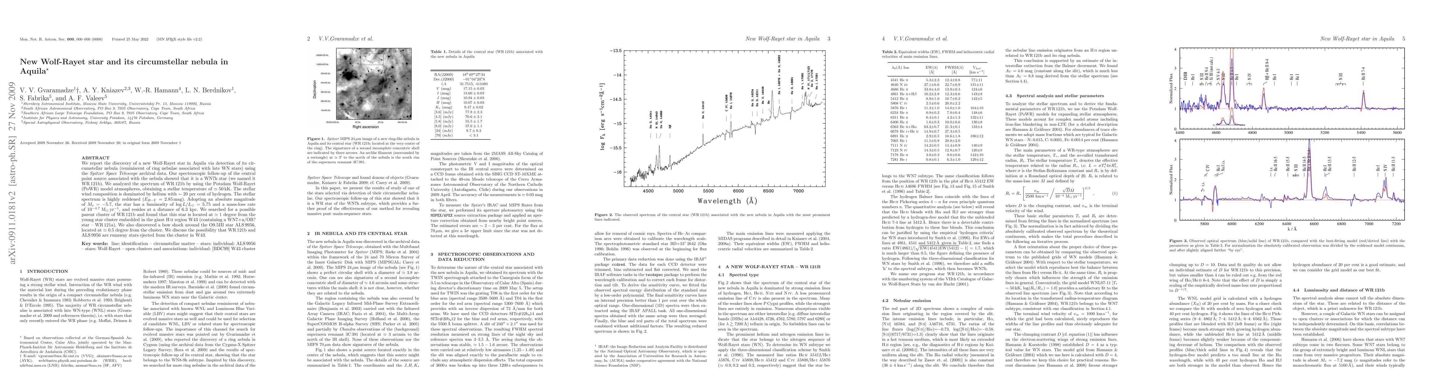This paper reports the discovery of a new Wolf-Rayet star, WR121b, in Aquila, identified through its circumstellar nebula using Spitzer data. Spectroscopic analysis reveals it as a WN7h star with a high temperature and significant helium content, suggesting it may be a runaway star ejected from the nearby young cluster W43.