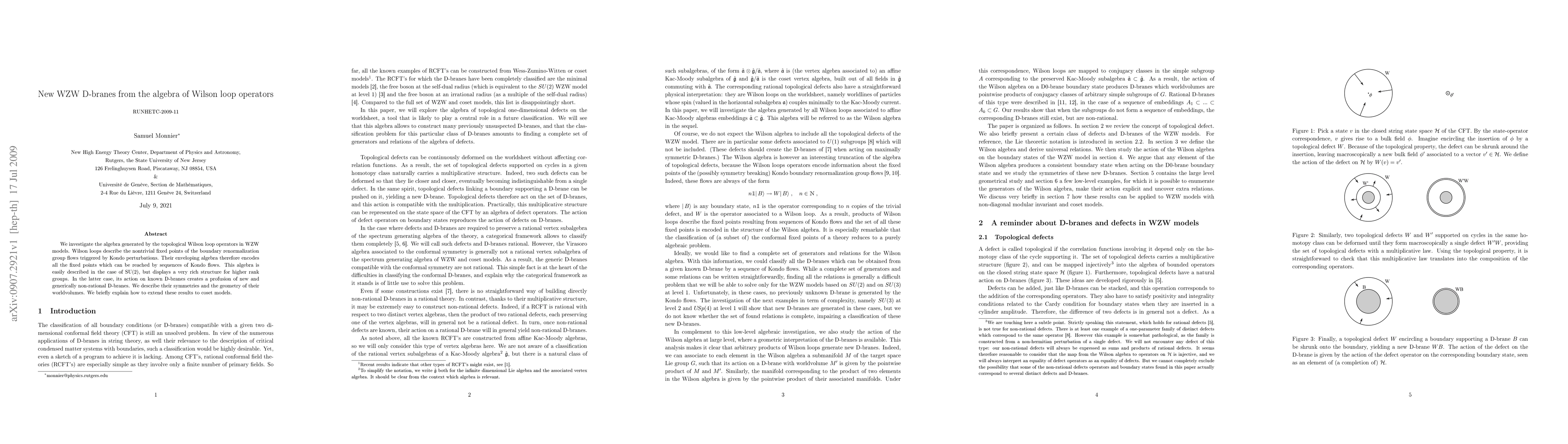 We investigate the algebra generated by the topological Wilson loop operators in WZW models. Wilson loops describe the nontrivial fixed points of the boundary renormalization group flows triggered by Kondo perturbations. Their enveloping algebra therefore encodes all the fixed points which can be reached by sequences of Kondo flows. This algebra is easily described in the case of SU(2), but displays a very rich structure for higher rank groups. In the latter case, its action on known D-branes creates a profusion of new and generically non-rational D-branes. We describe their symmetries and the geometry of their worldvolumes. We briefly explain how to extend these results to coset models.
