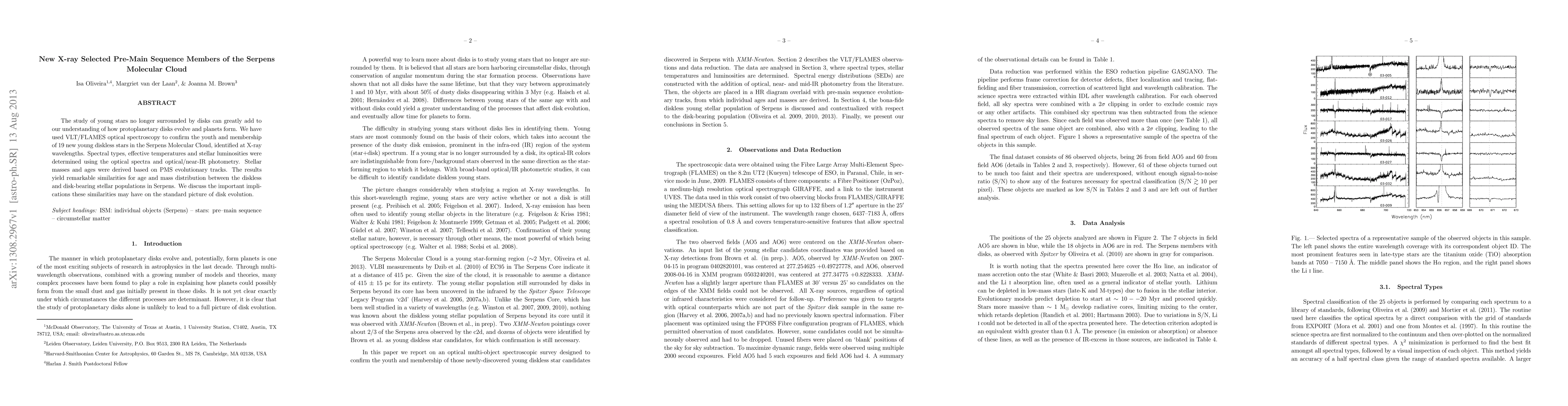 The study of young stars no longer surrounded by disks can greatly add to our understanding of how protoplanetary disks evolve and planets form. We have used VLT/FLAMES optical spectroscopy to confirm the youth and membership of 19 new young diskless stars in the Serpens Molecular Cloud, identified at X-ray wavelengths. Spectral types, effective temperatures and stellar luminosities were determined using the optical spectra and optical/near-IR photometry. Stellar masses and ages were derived based on PMS evolutionary tracks. The results yield remarkable similarities for age and mass distribution between the diskless and disk-bearing stellar populations in Serpens. We discuss the important impli- cations these similarities may have on the standard picture of disk evolution.