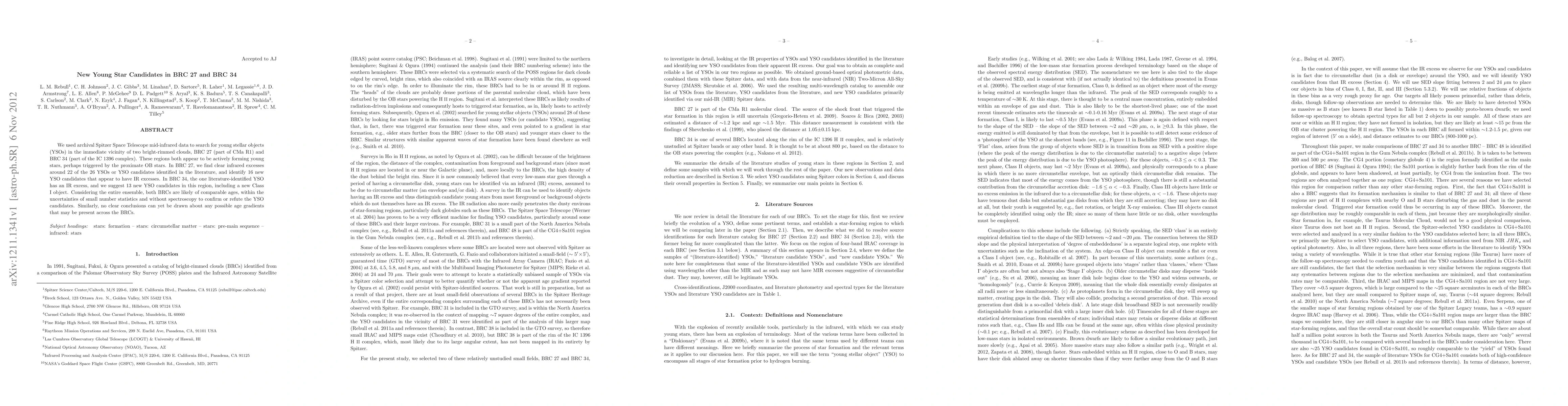 We used archival Spitzer Space Telescope mid-infrared data to search for young stellar objects (YSOs) in the immediate vicinity of two bright-rimmed clouds, BRC 27 (part of CMa R1) and BRC 34 (part of the IC 1396 complex). These regions both appear to be actively forming young stars, perhaps triggered by the proximate OB stars. In BRC 27, we find clear infrared excesses around 22 of the 26 YSOs or YSO candidates identified in the literature, and identify 16 new YSO candidates that appear to have IR excesses. In BRC 34, the one literature-identified YSO has an IR excess, and we suggest 13 new YSO candidates in this region, including a new Class I object. Considering the entire ensemble, both BRCs are likely of comparable ages, within the uncertainties of small number statistics and without spectroscopy to confirm or refute the YSO candidates. Similarly, no clear conclusions can yet be drawn about any possible age gradients that may be present across the BRCs.