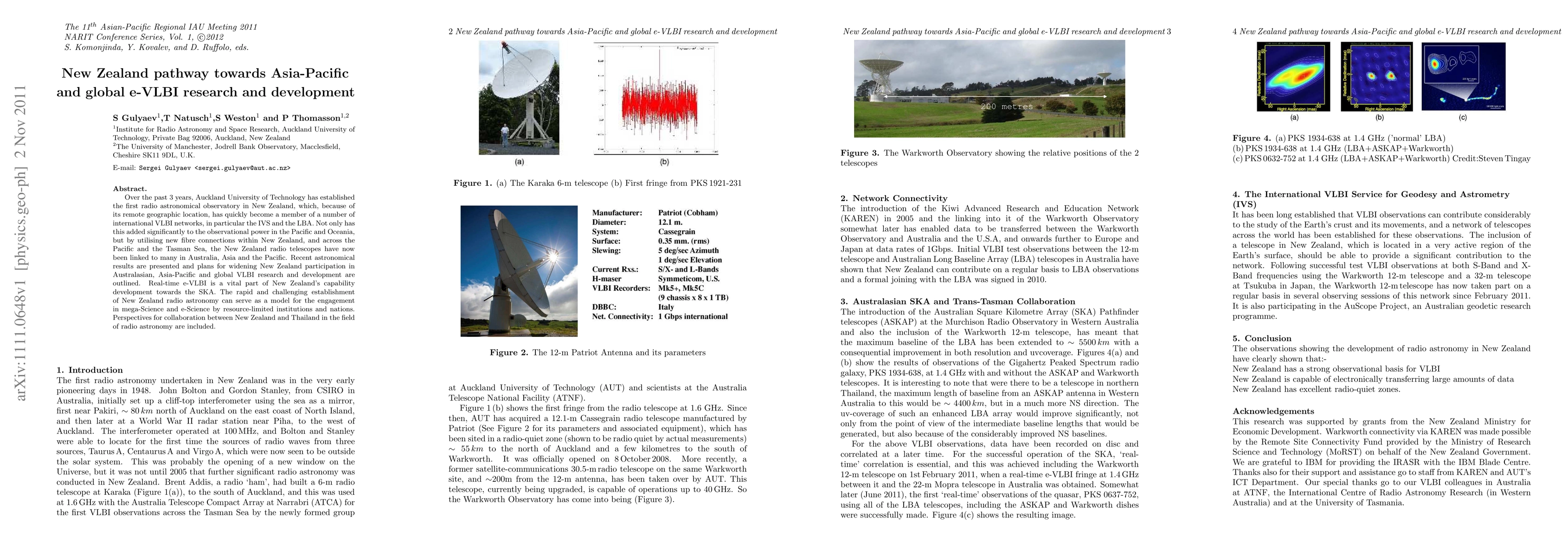 This paper discusses Auckland University of Technology's establishment of New Zealand's first radio astronomical observatory and its integration into international Very Long Baseline Interferometry (VLBI) networks. The new observatory has significantly enhanced observational capabilities in the Pacific and Oceania, and plans are outlined for further participation in Australasian, Asia-Pacific, and global VLBI research, with a focus on real-time e-VLBI and collaboration with Thailand.