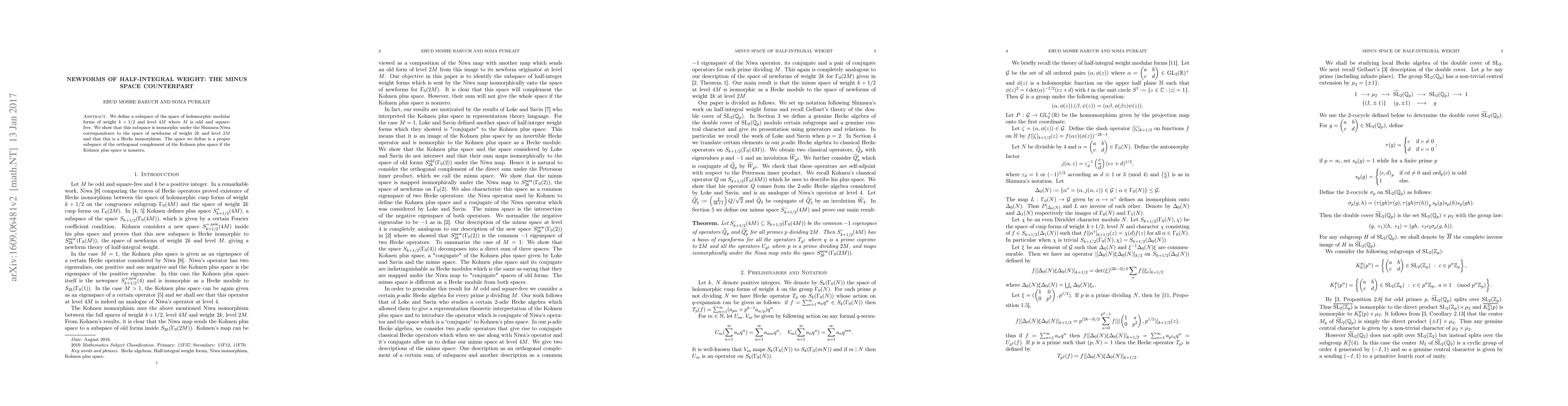 This paper defines a subspace of holomorphic modular forms of half-integral weight, demonstrating its isomorphism via the Shimura-Niwa correspondence to the space of newforms of integral weight, establishing a Hecke isomorphism. This subspace is a proper part of the orthogonal complement of the Kohnen plus space when the latter is nonzero.